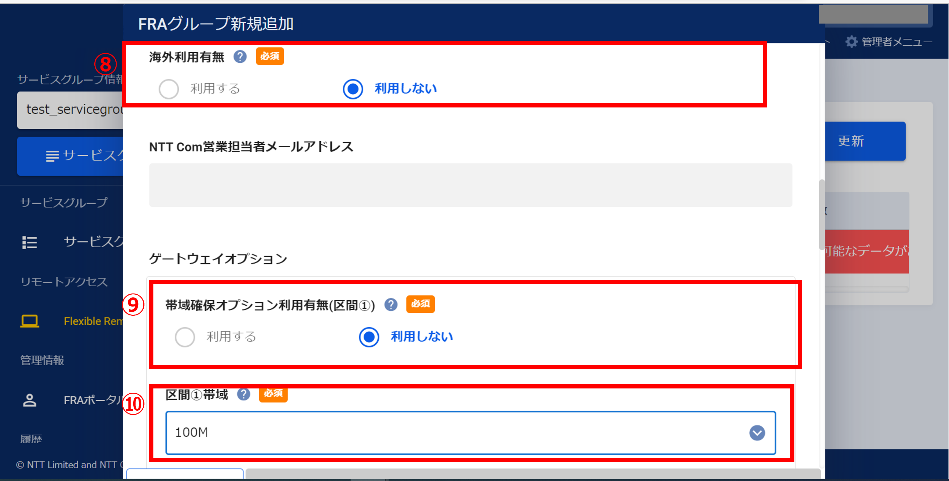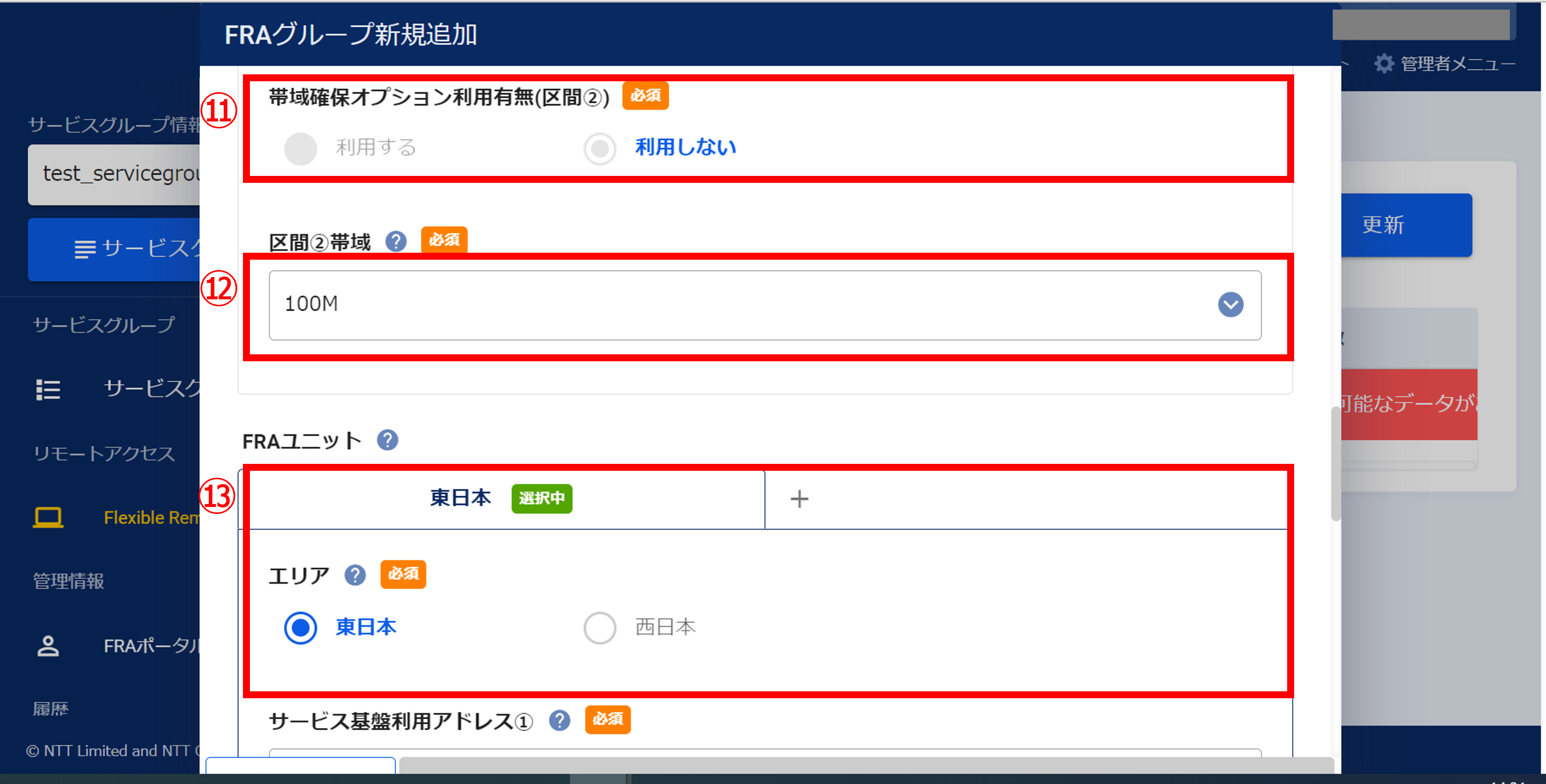 ※FRAグループ作成時に「帯域確保オプション利用有無(区間➀)」で[利用する]を選択した場合は