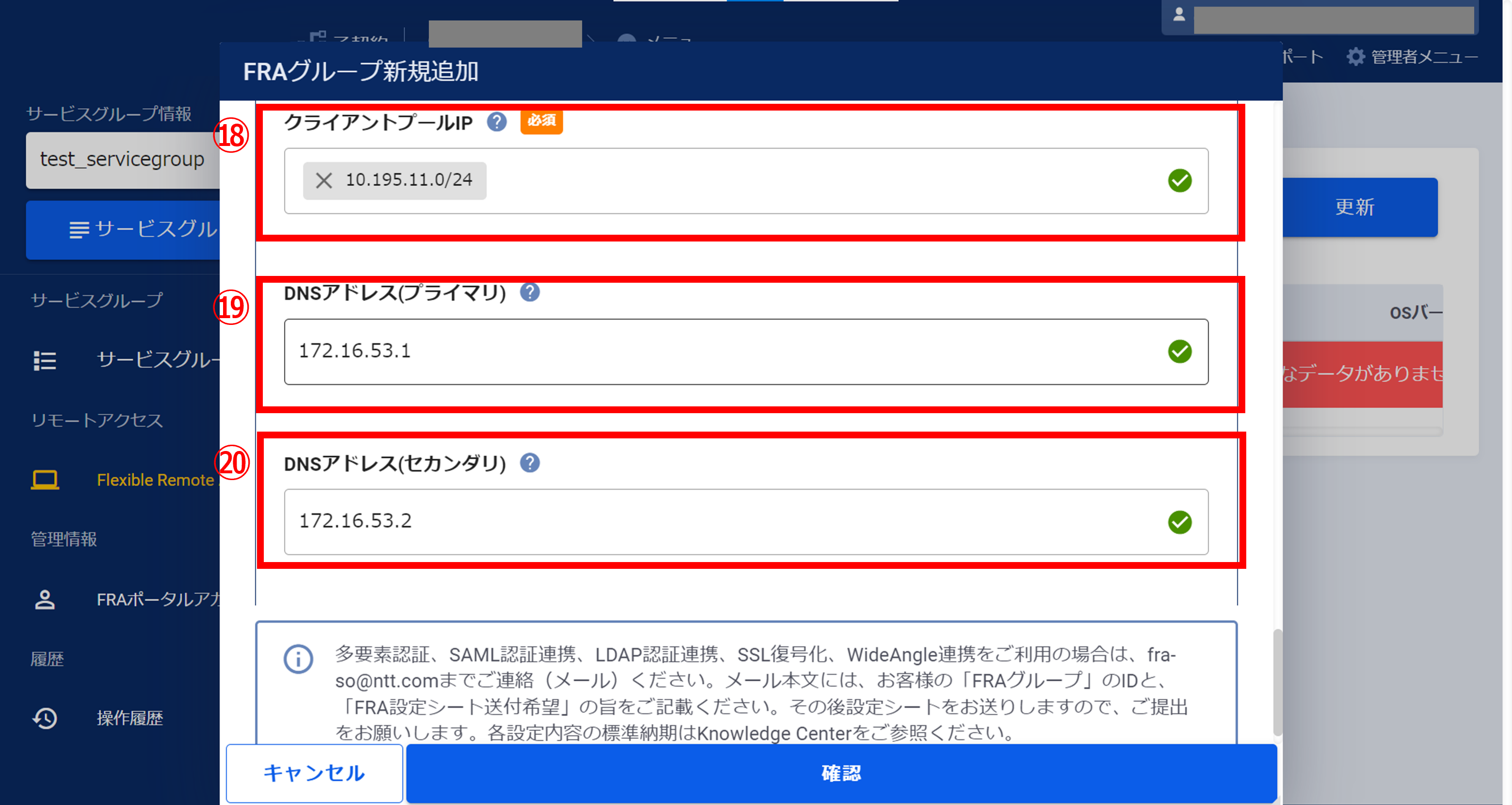 3.9.9 FRAグループの新規追加確認画面② (FRA)