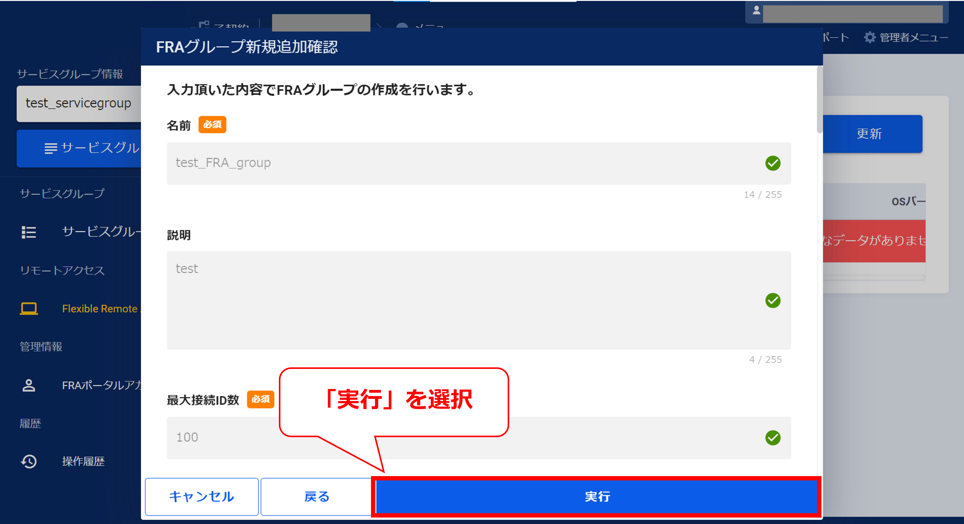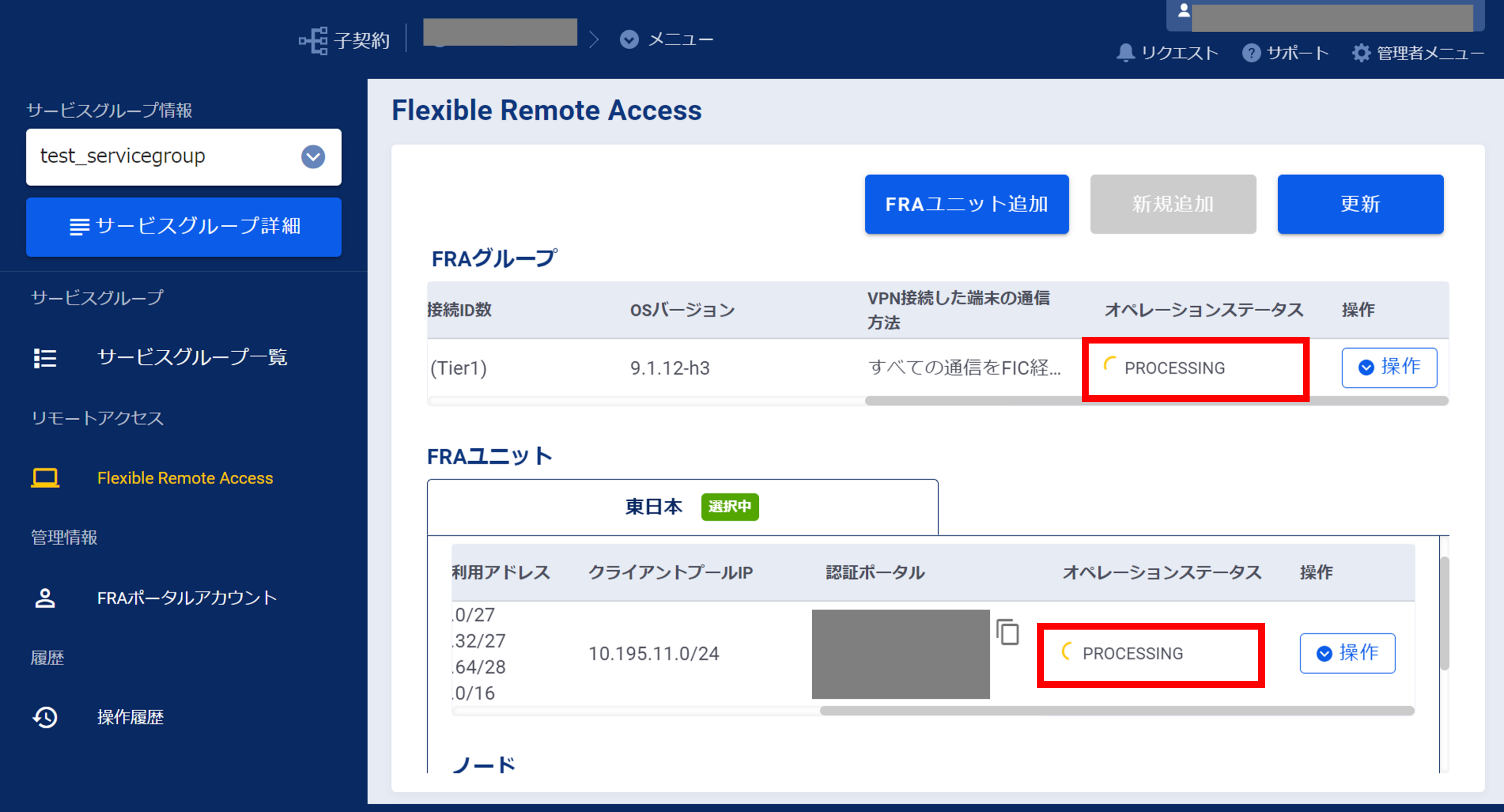 3.8.7 サービスグループ作成後の画面(FRA)