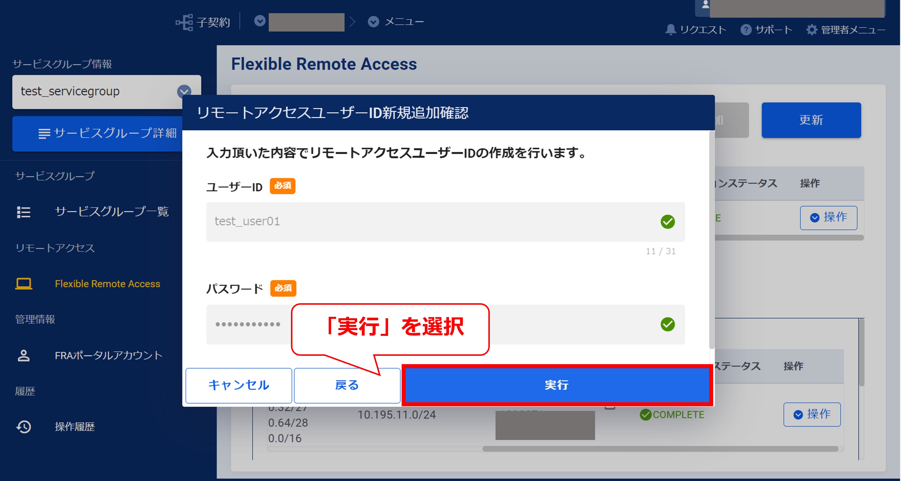 3.11.3 リモートアクセスユーザーの作成確認画面(FRA)