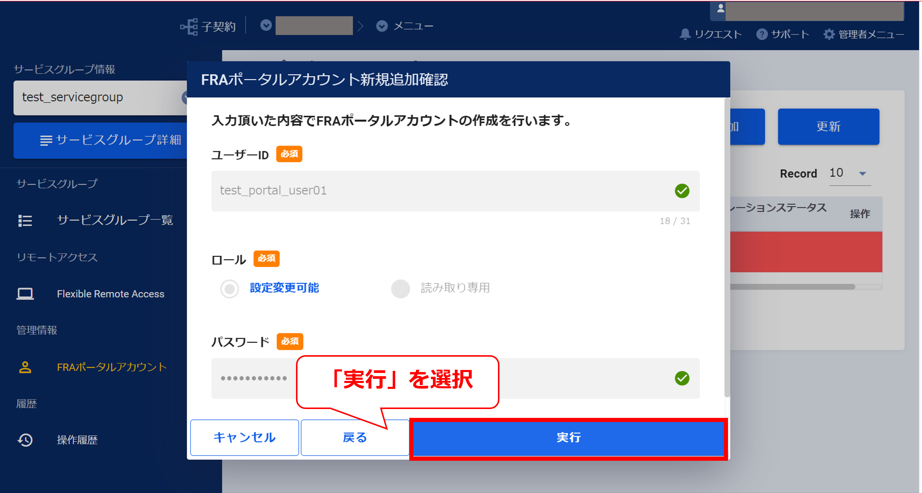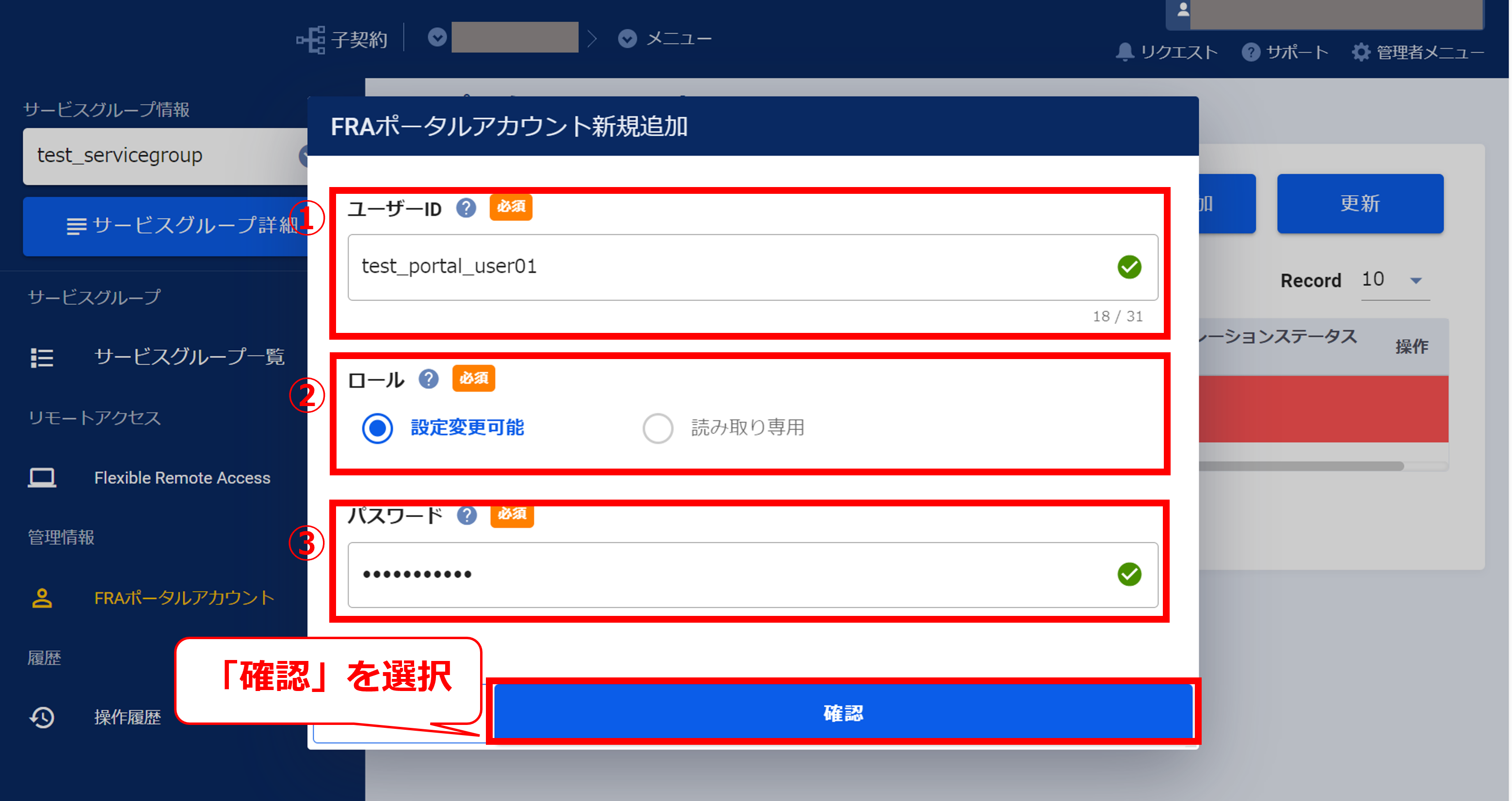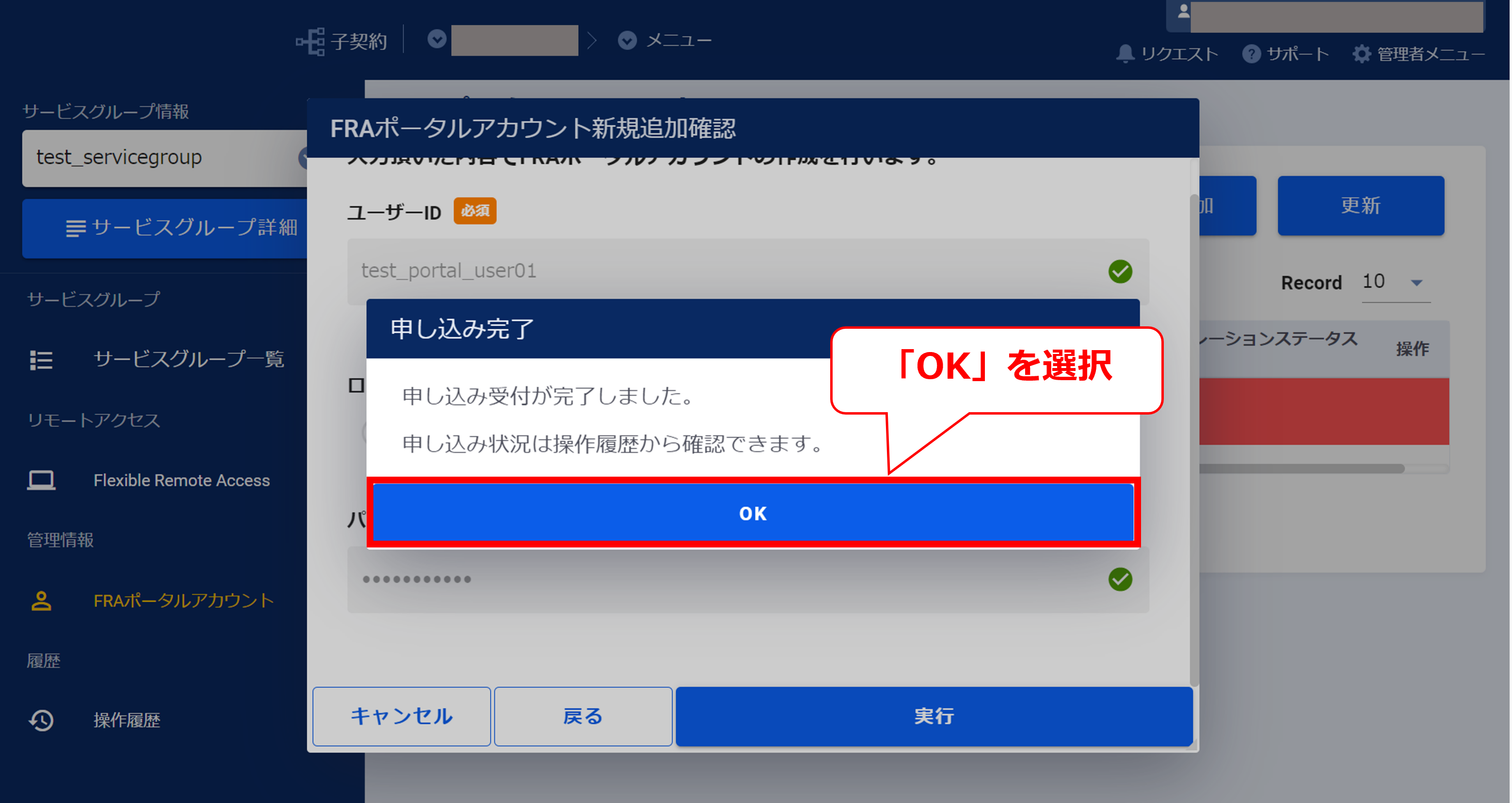 3.12.3 FRAポータルアカウントの作成確認画面(FRA)