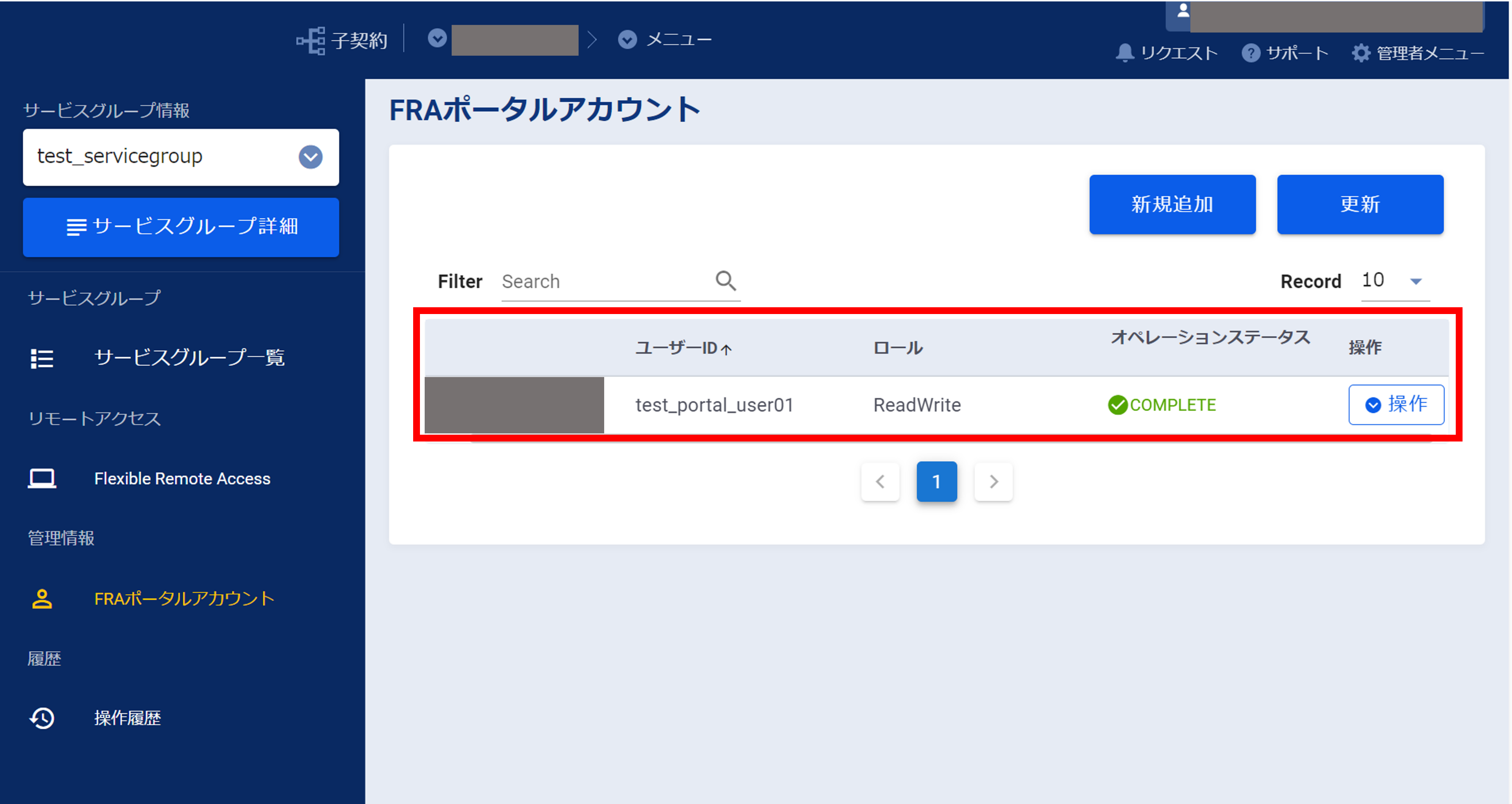 3.12.4 FRAポータルアカウントの作成受け付け画面(FRA)