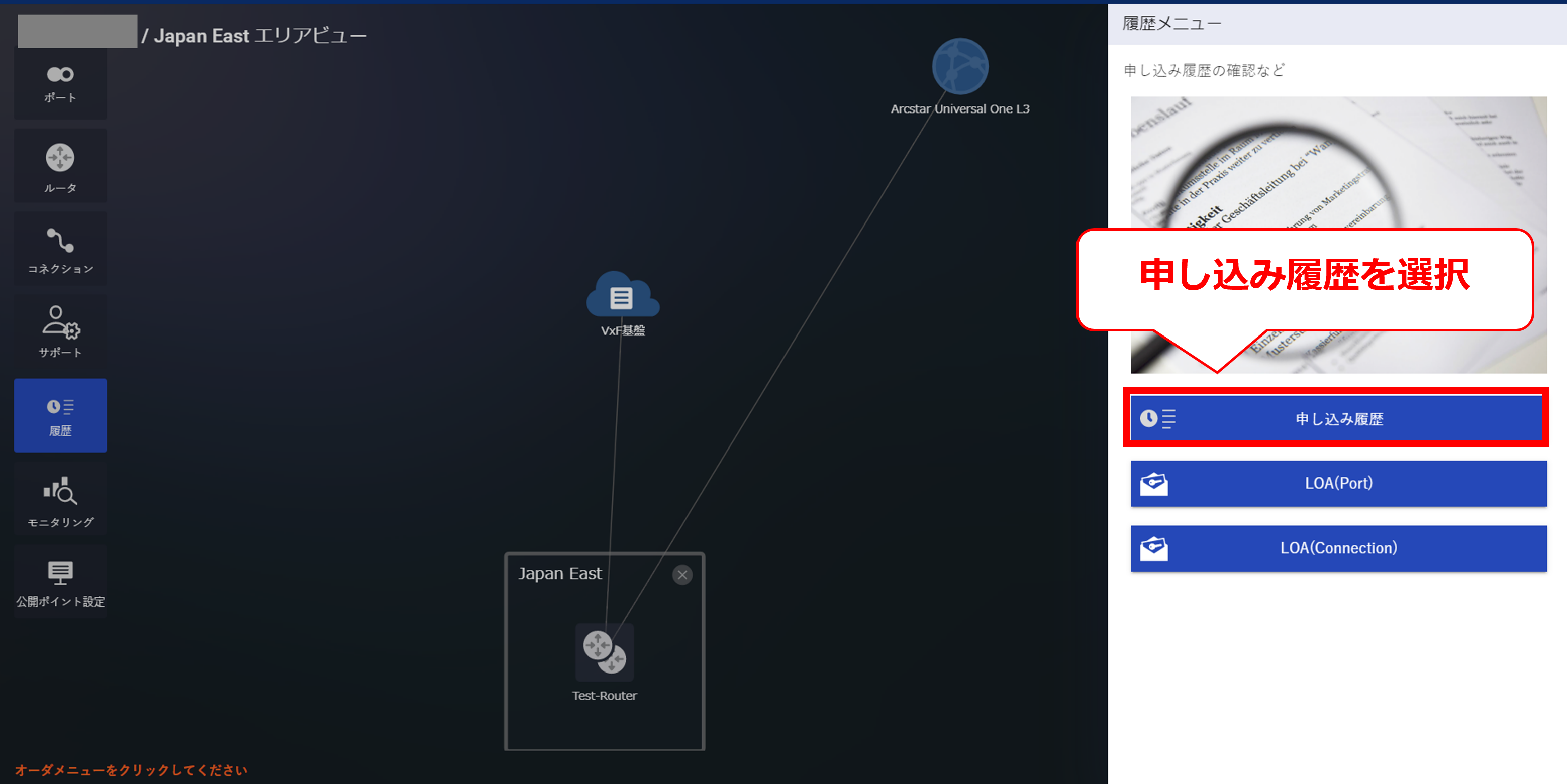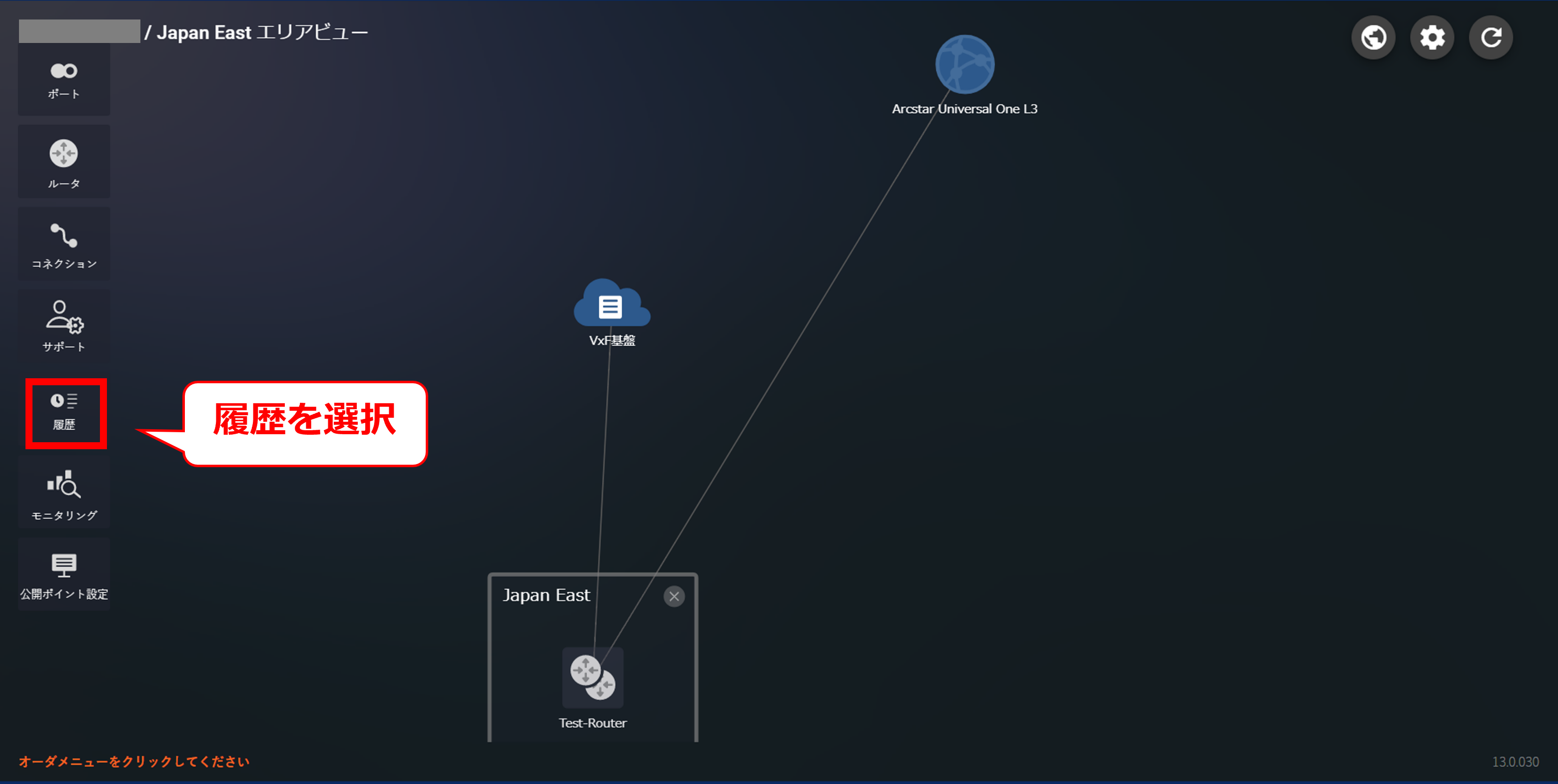 3.7.1 コネクションを選択後の画面(Arcstar Universal One)