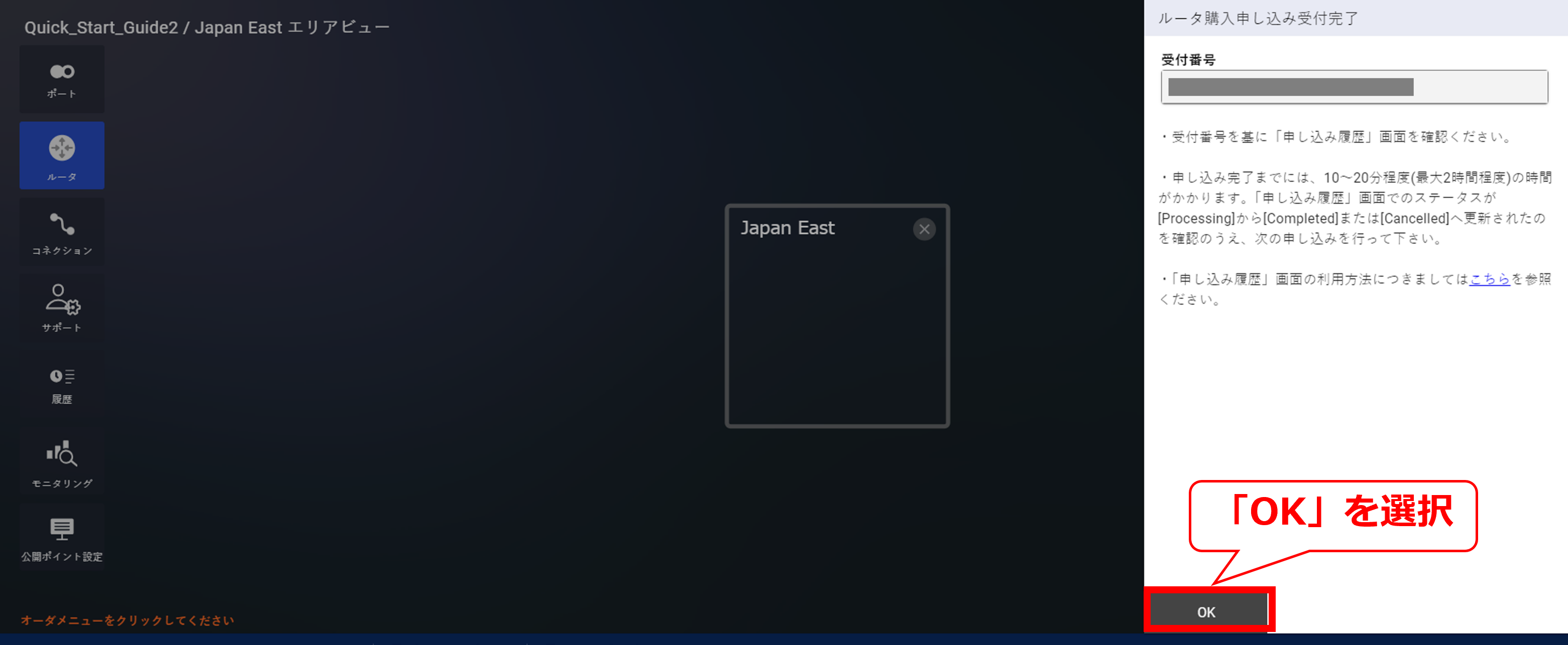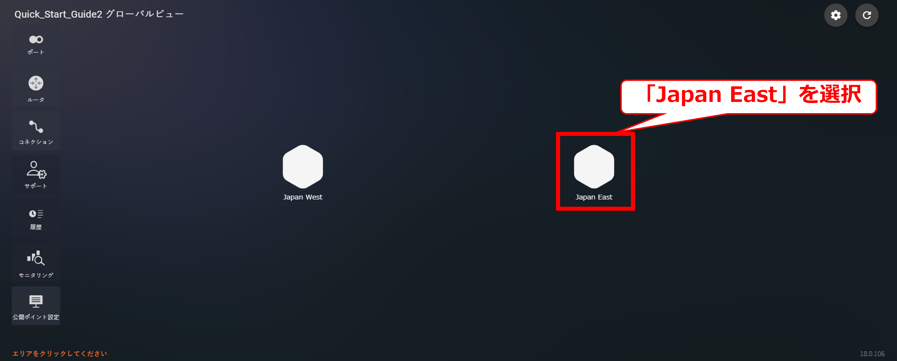10.6.2 Japan Eastを選択後の画面