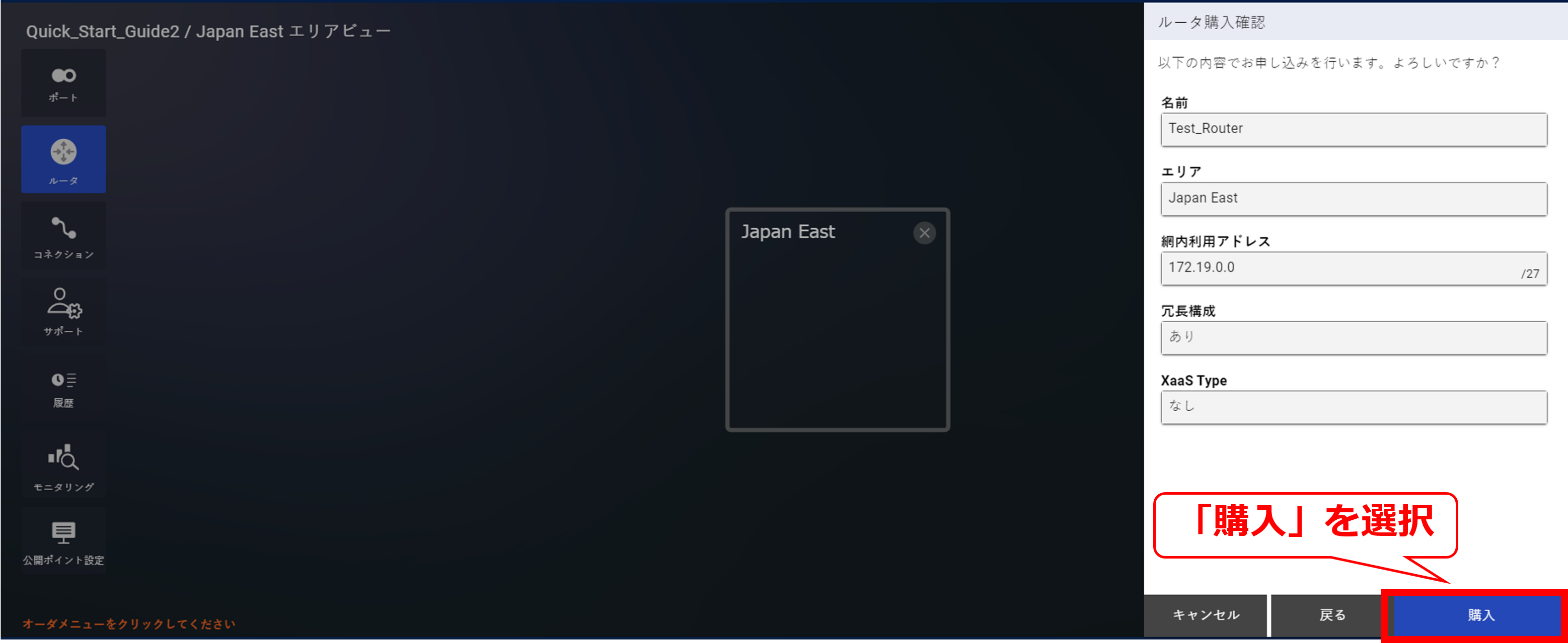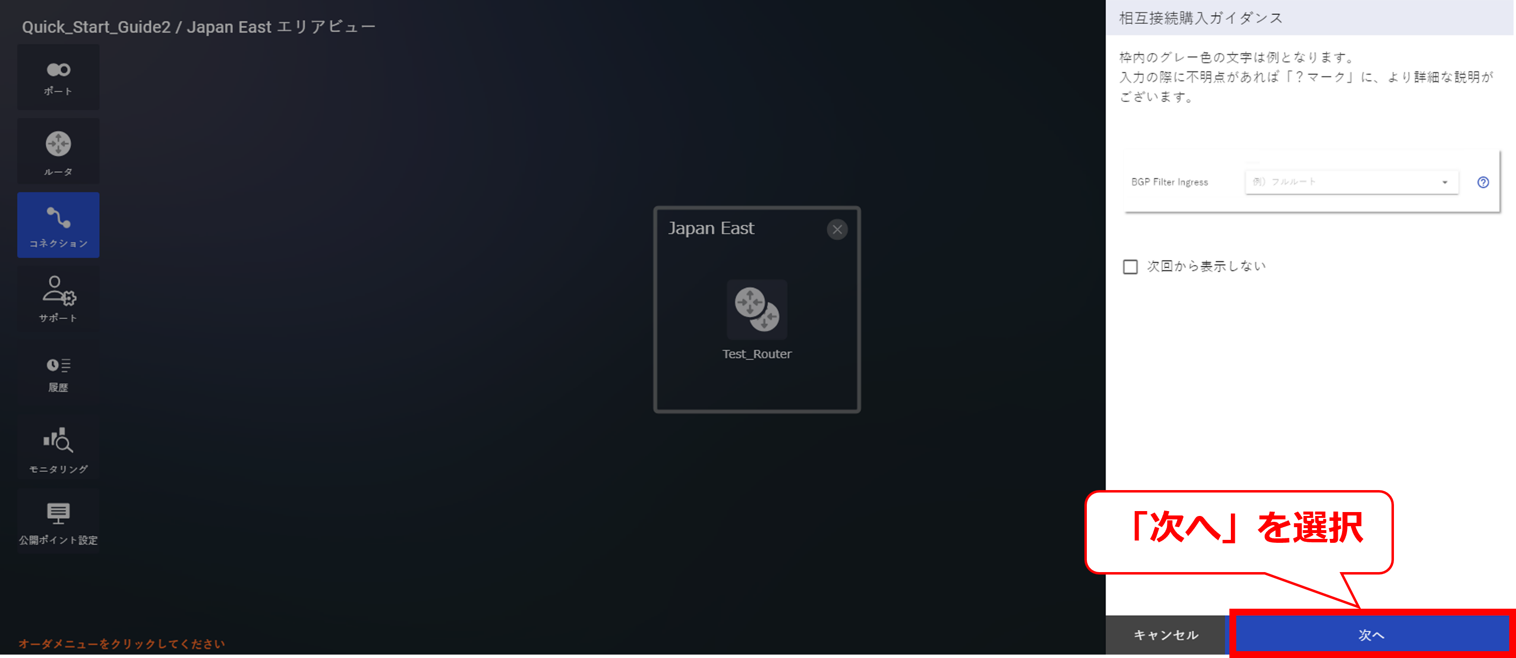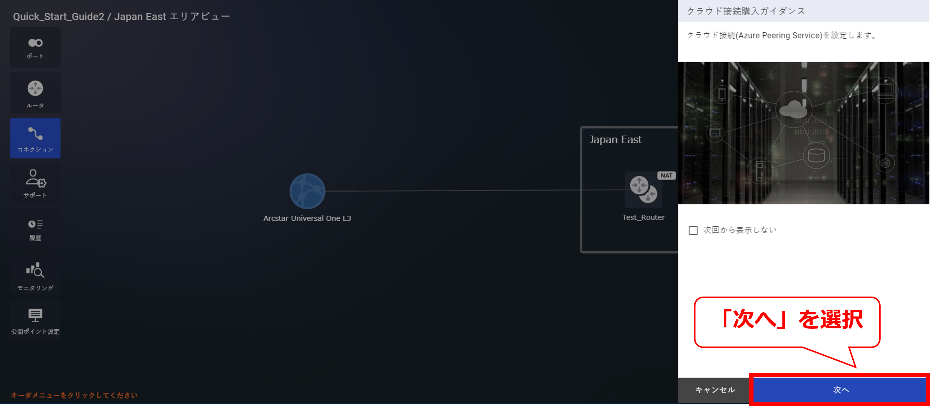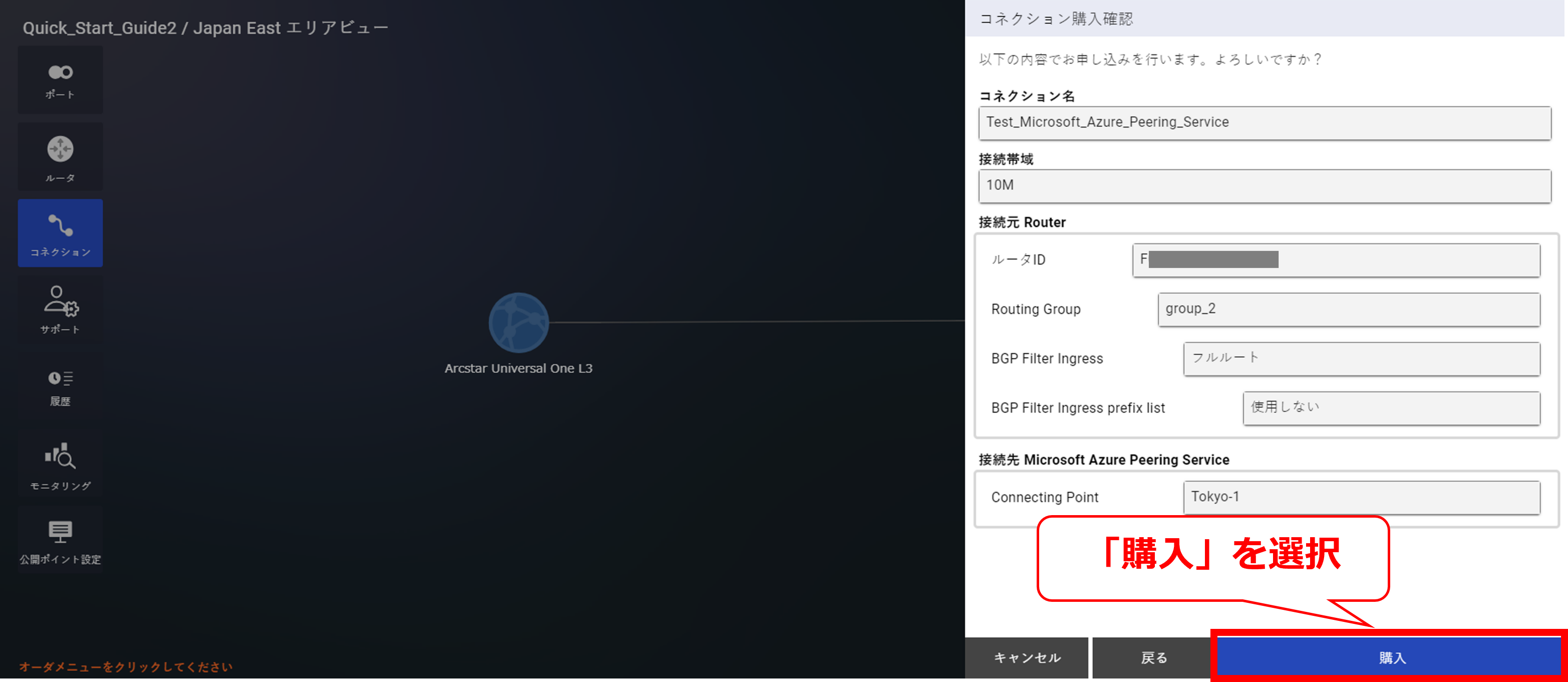 10.9.3 クラウド接続購入ガイダンス画面(Microsoft Azure Peering Service)