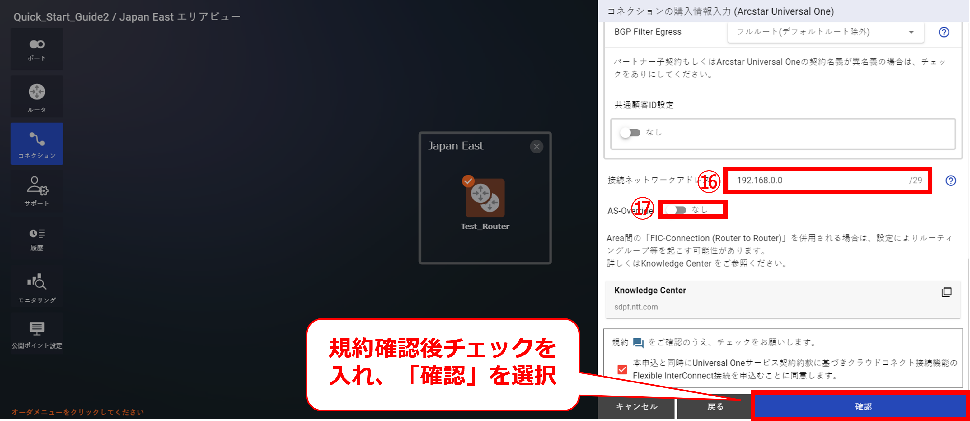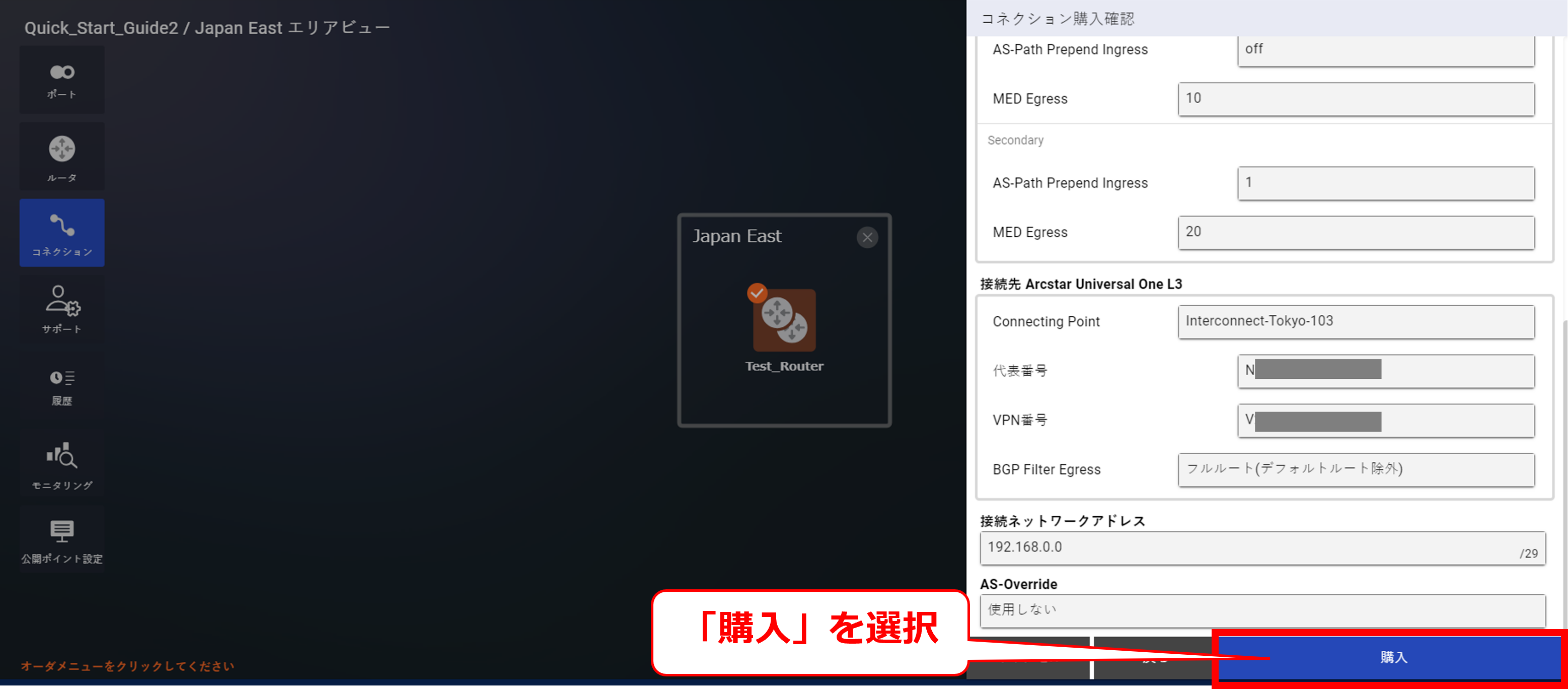 10.7.8 コネクションの購入確認画面①(Arcstar Universal One)