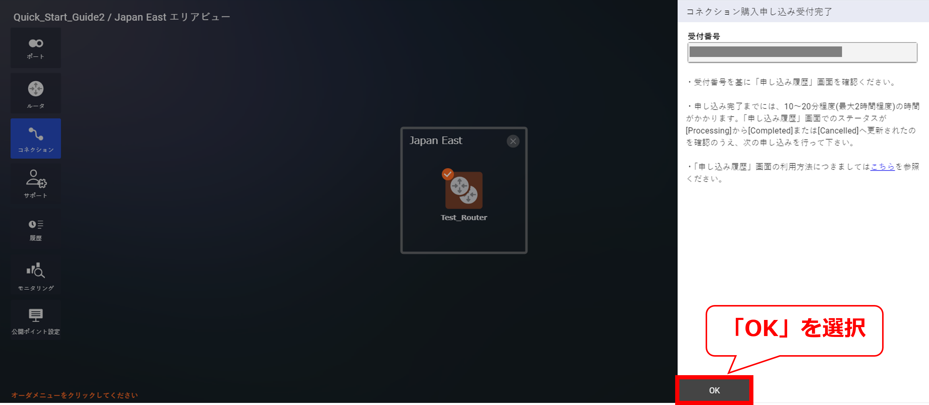 10.9.7 コネクションの購入申し込み受付画面(Microsoft Azure Peering Service)