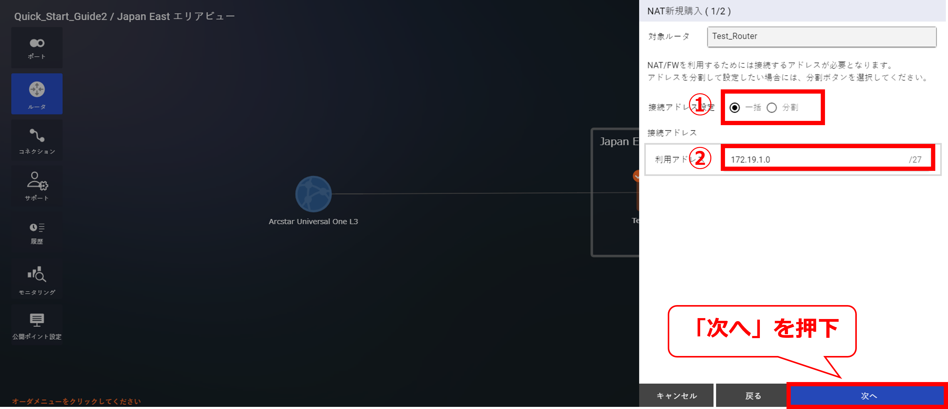 本手順では172.19.1.0/27