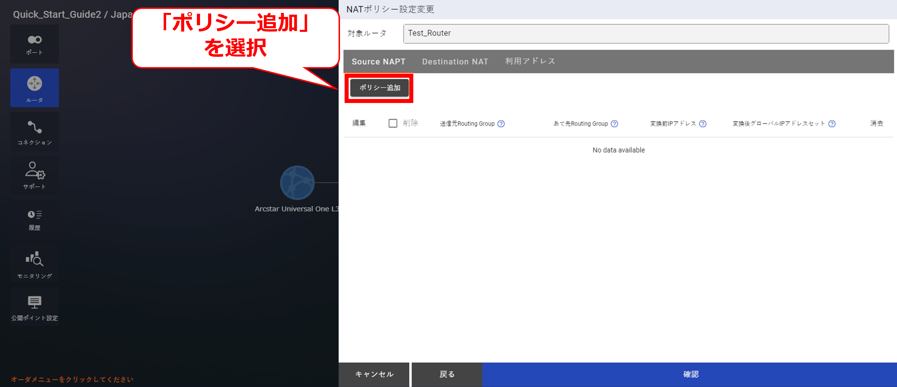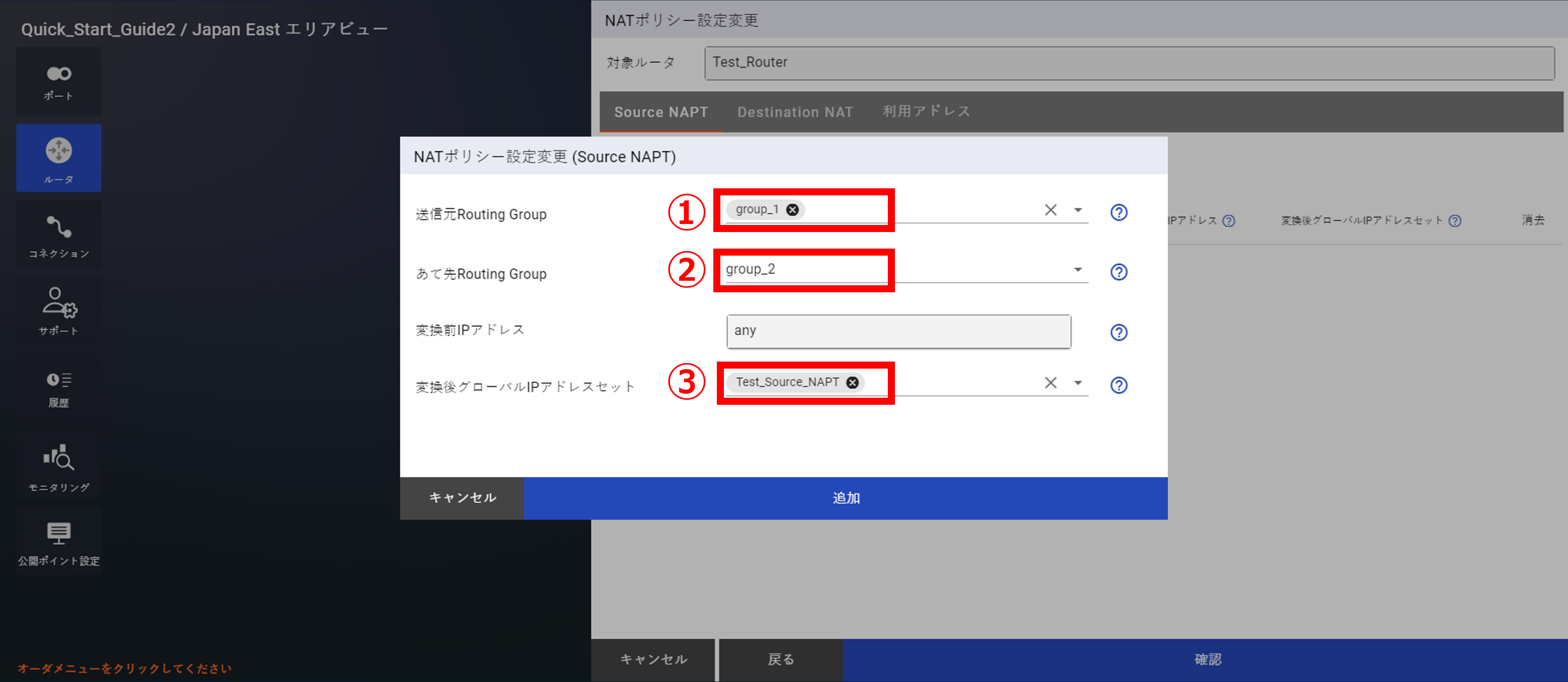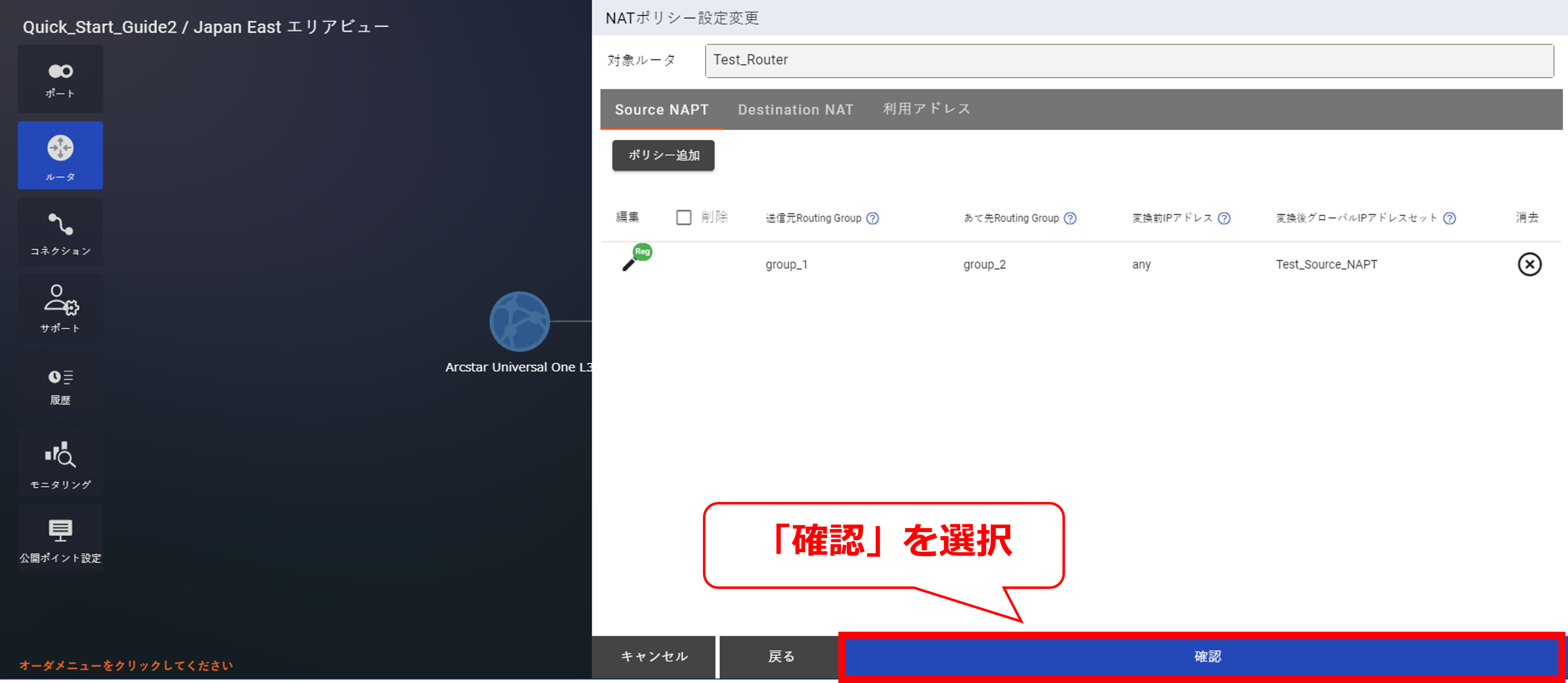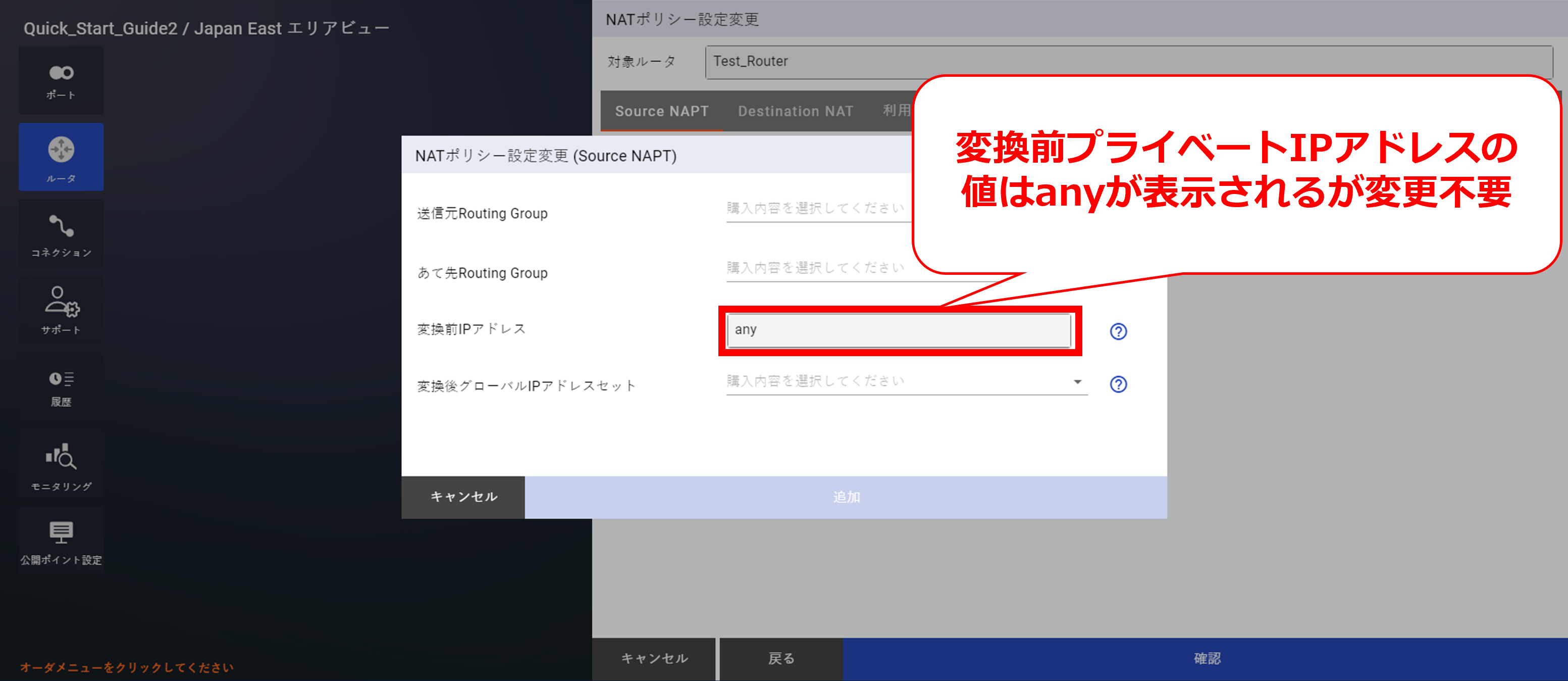 - NATについては「 10.8 Source NAPT購入及びポリシー設定」以降をご確認ください