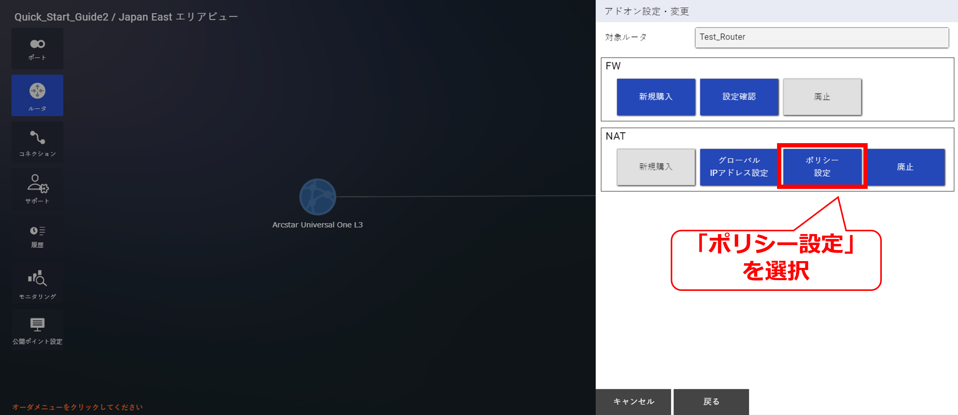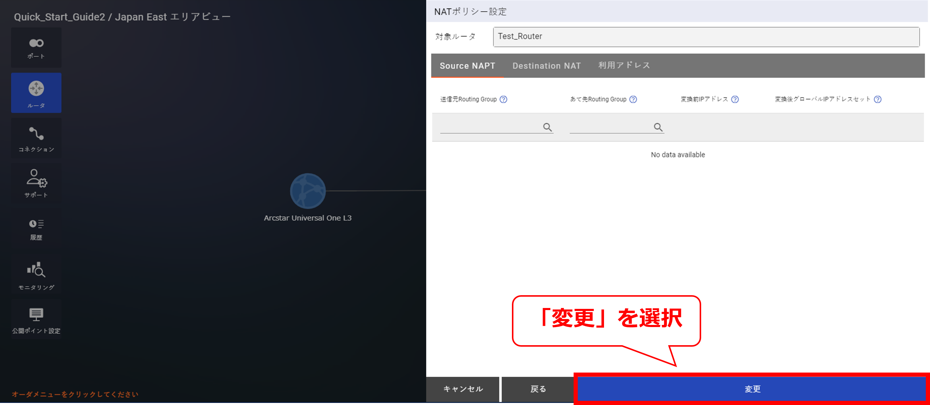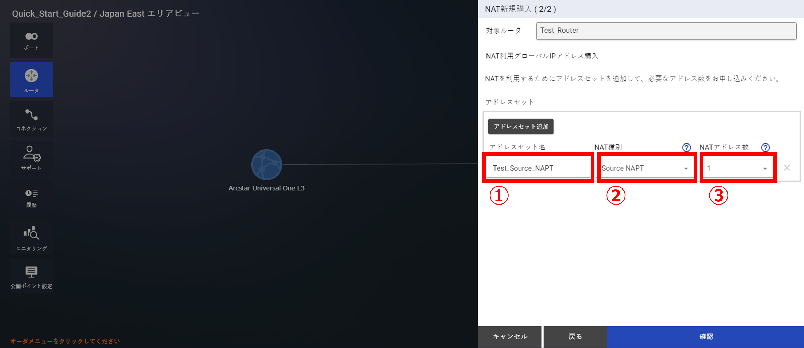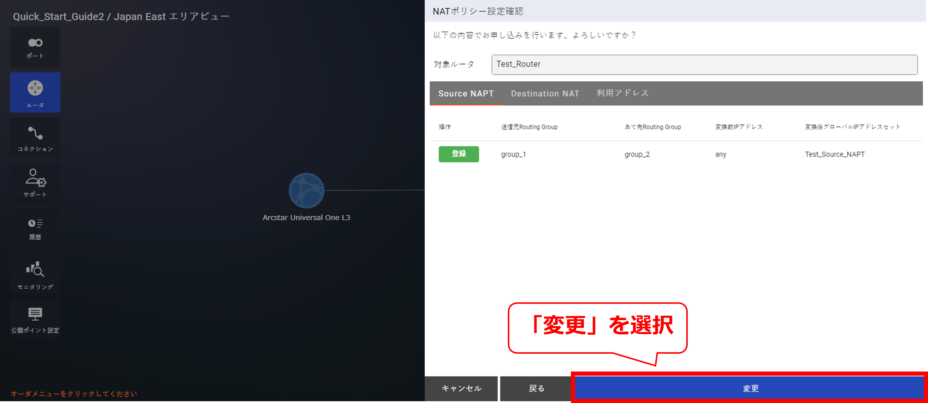 - NATについては「 10.8 Source NAPT購入及びポリシー設定」以降をご確認ください