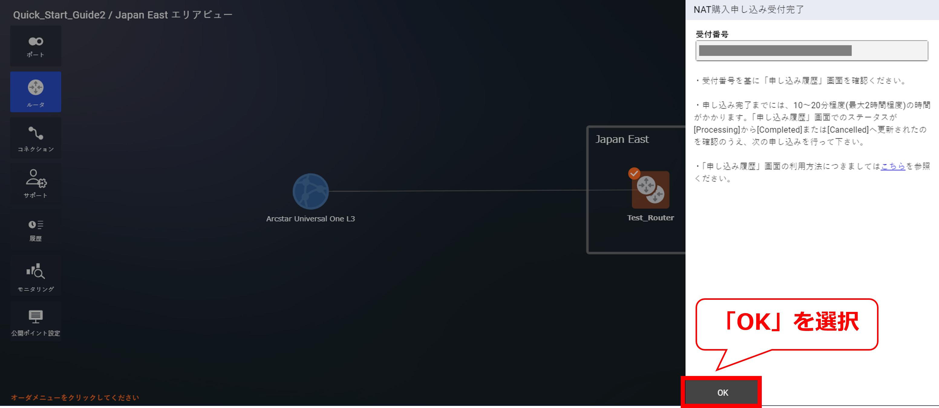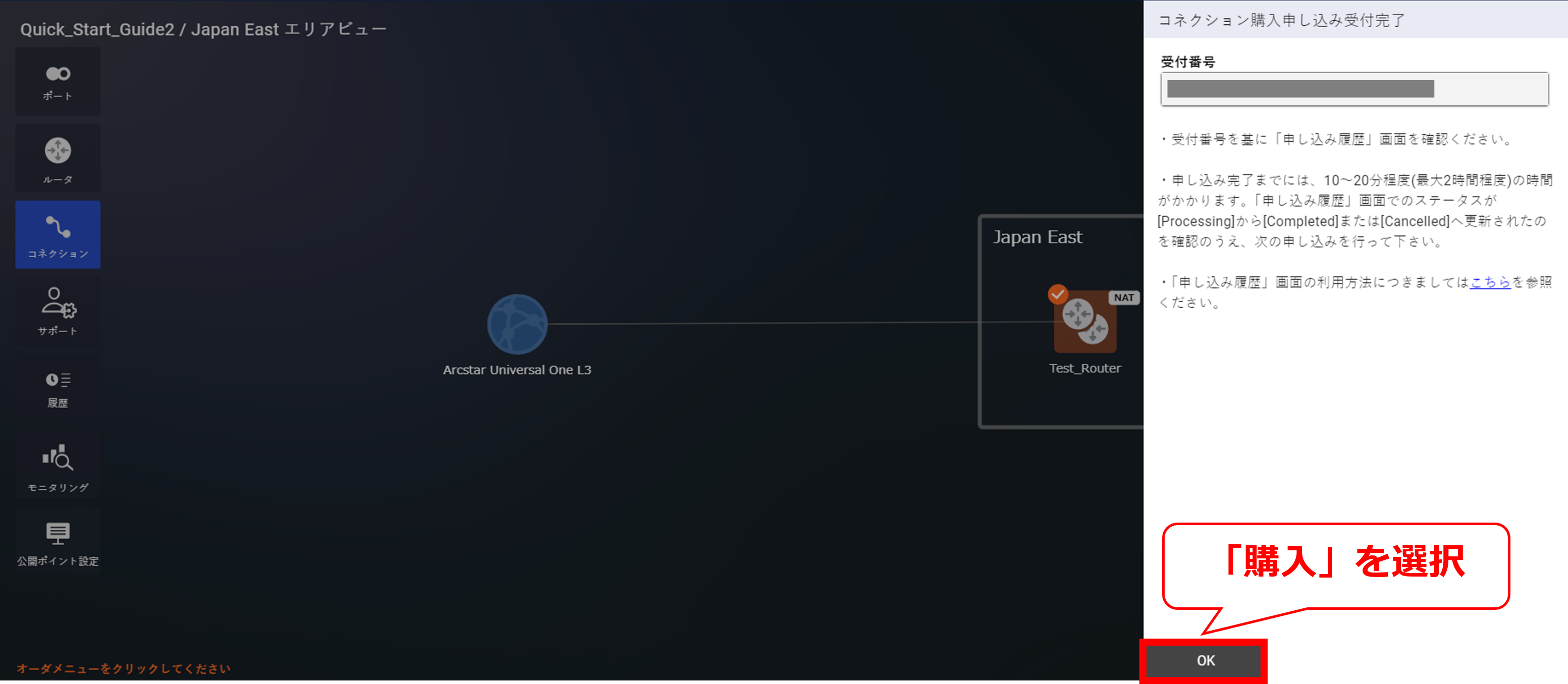 10.7.10 コネクションの購入申し込み受付画面(Arcstar Universal One)