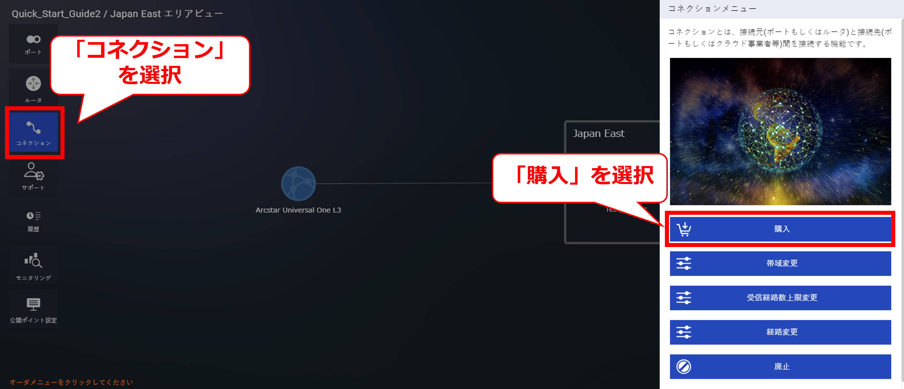 10.7.2 コネクション購入画面①(Arcstar Universal One)