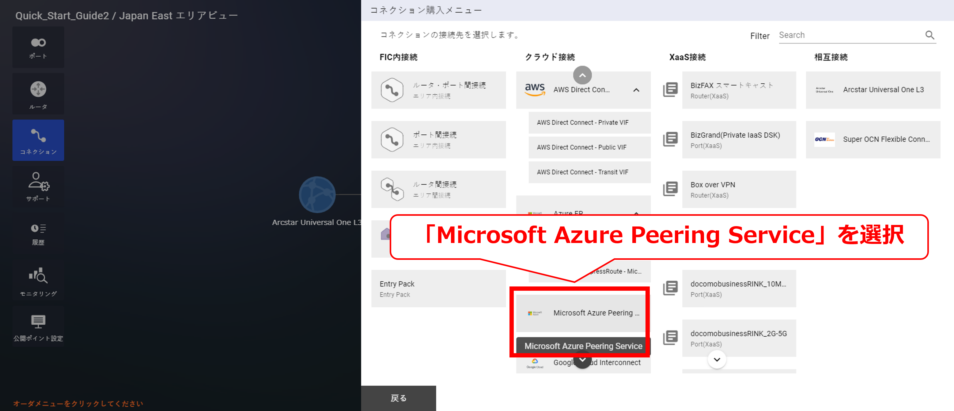 10.9.2 コネクション選択画面(Microsoft Azure Peering Service)