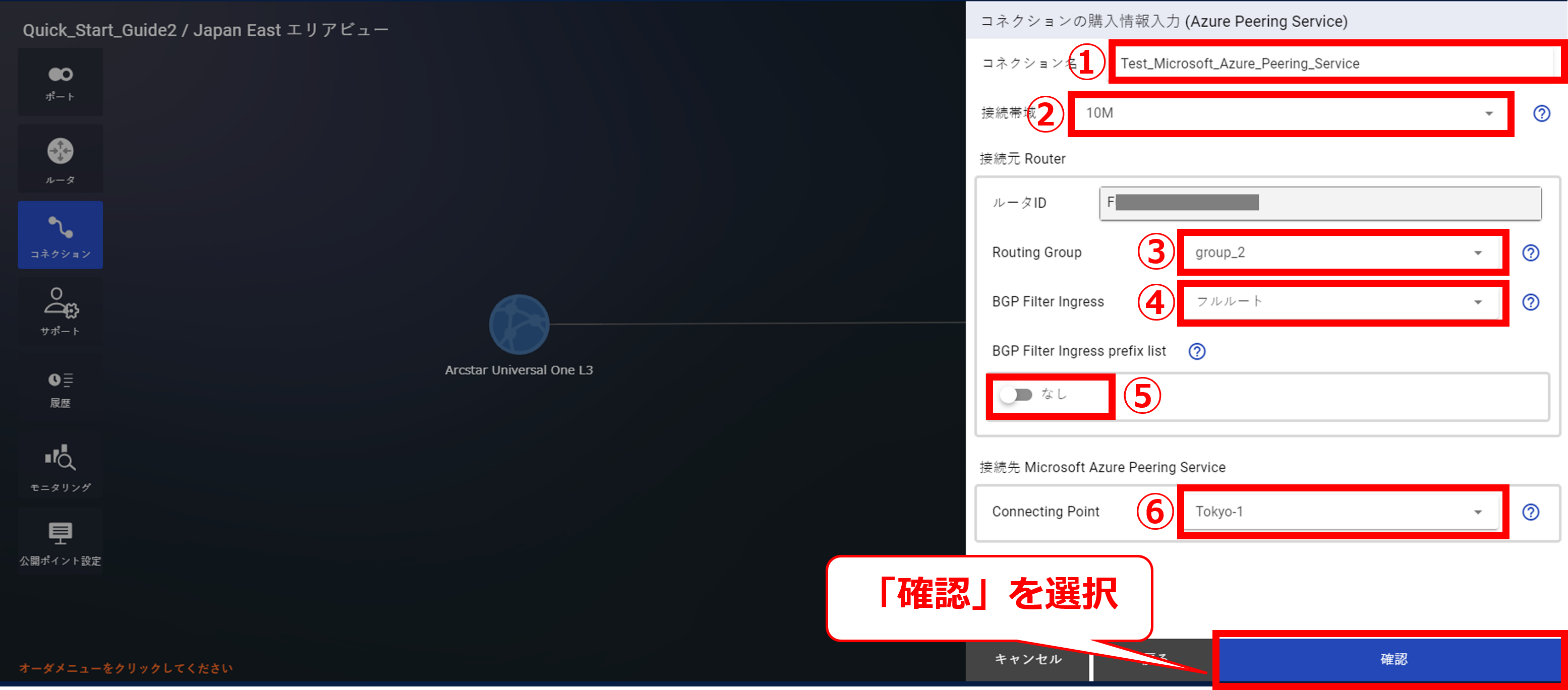 10.9.6 コネクションの購入確認画面(Microsoft Azure Peering Service)