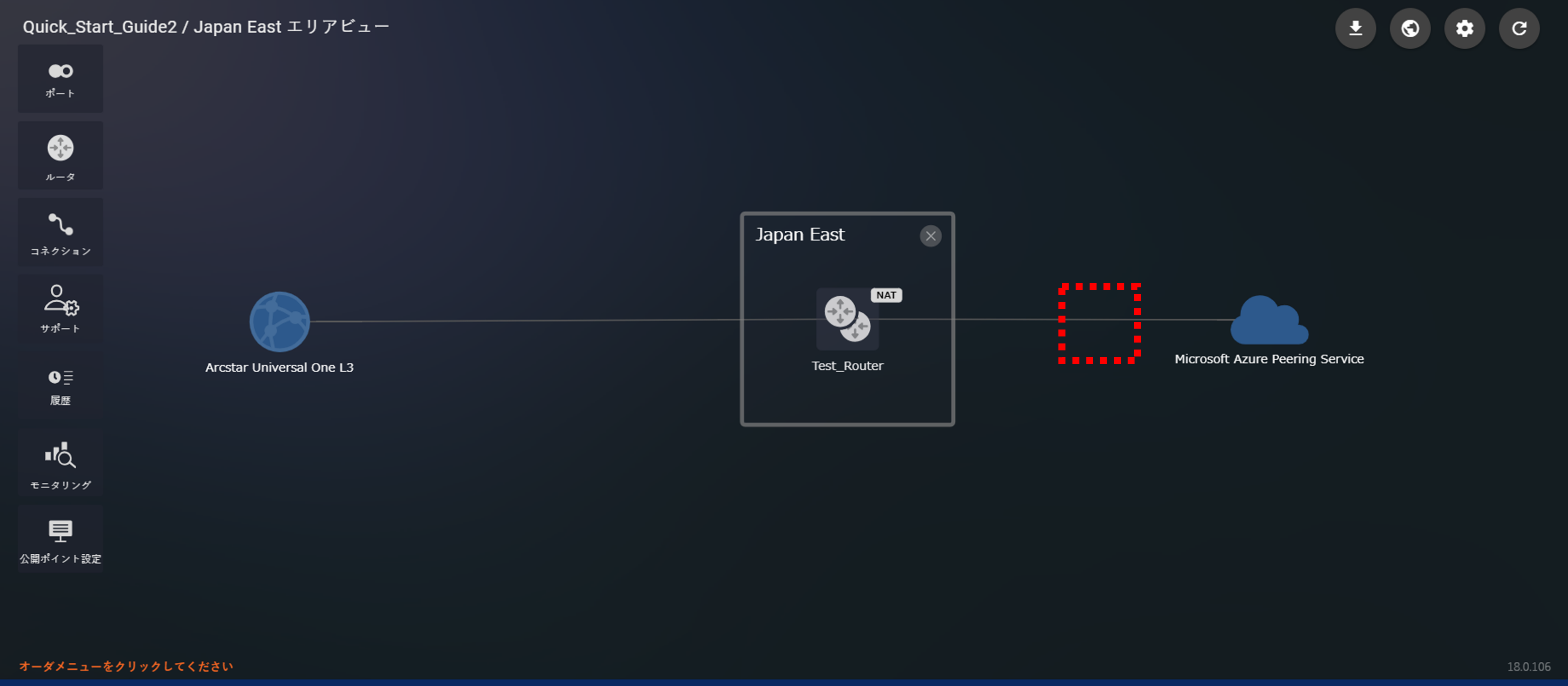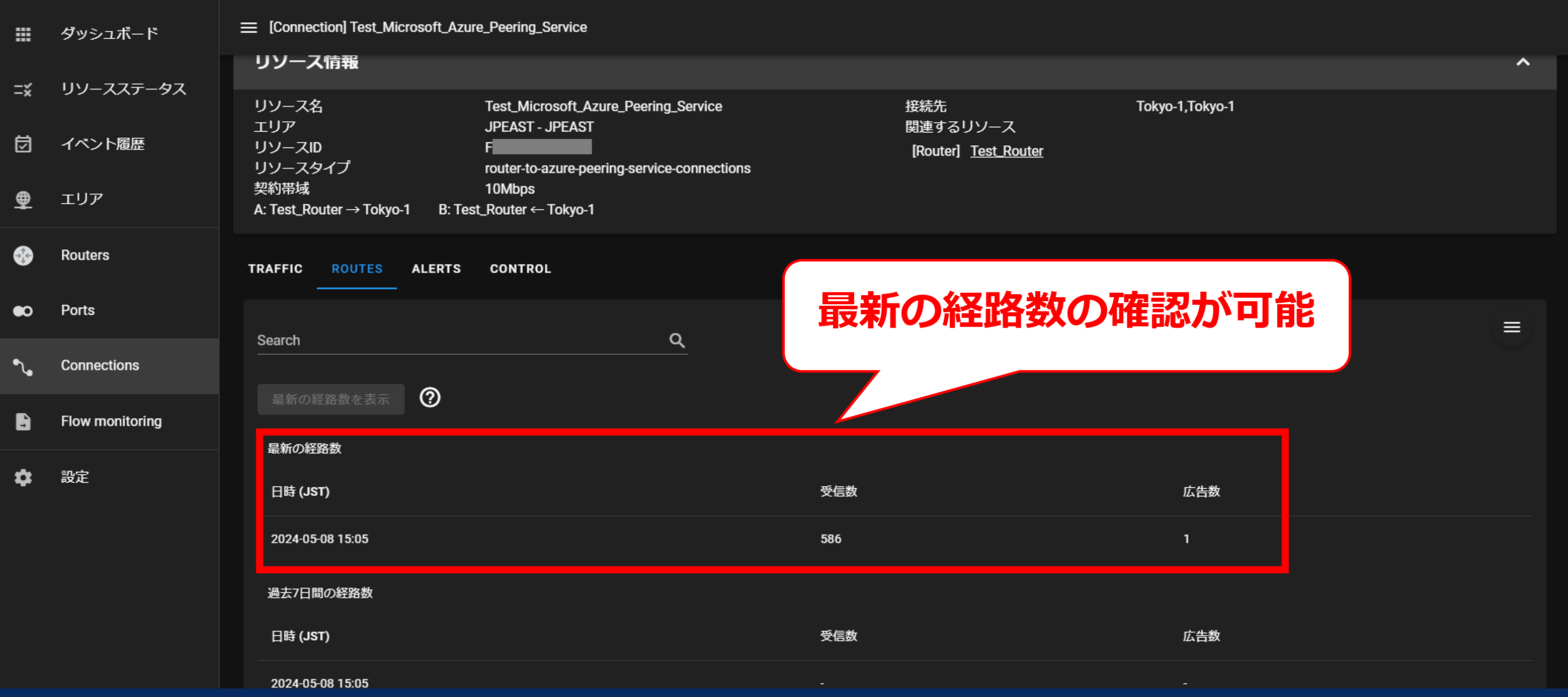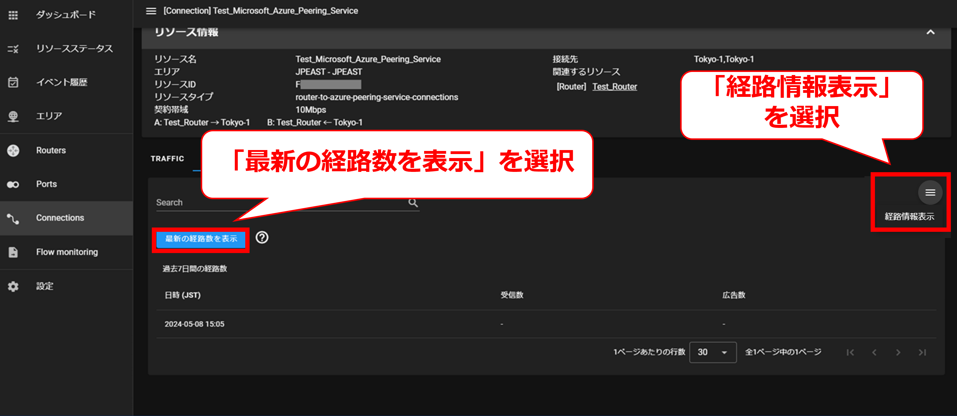 10.9.1 コネクションを選択後の画面(Microsoft Azure Peering Service)