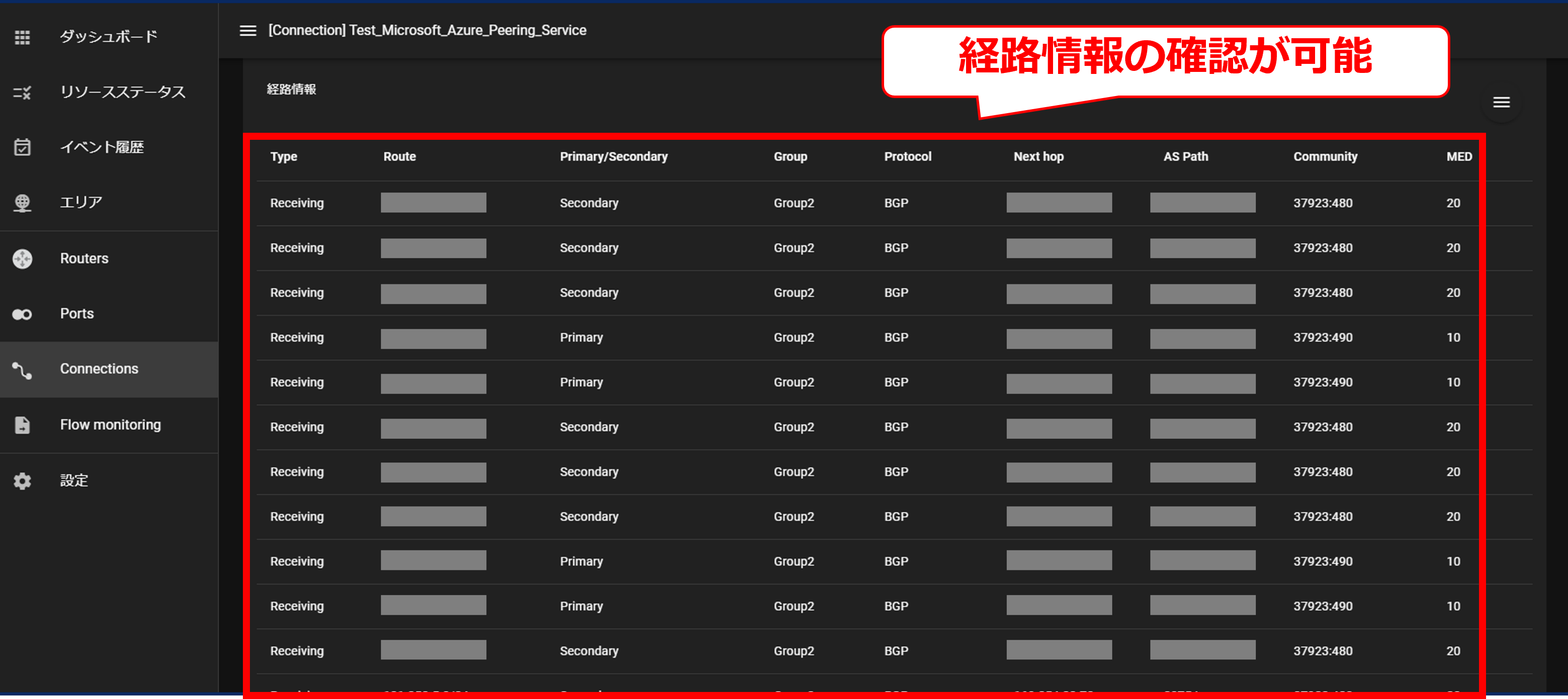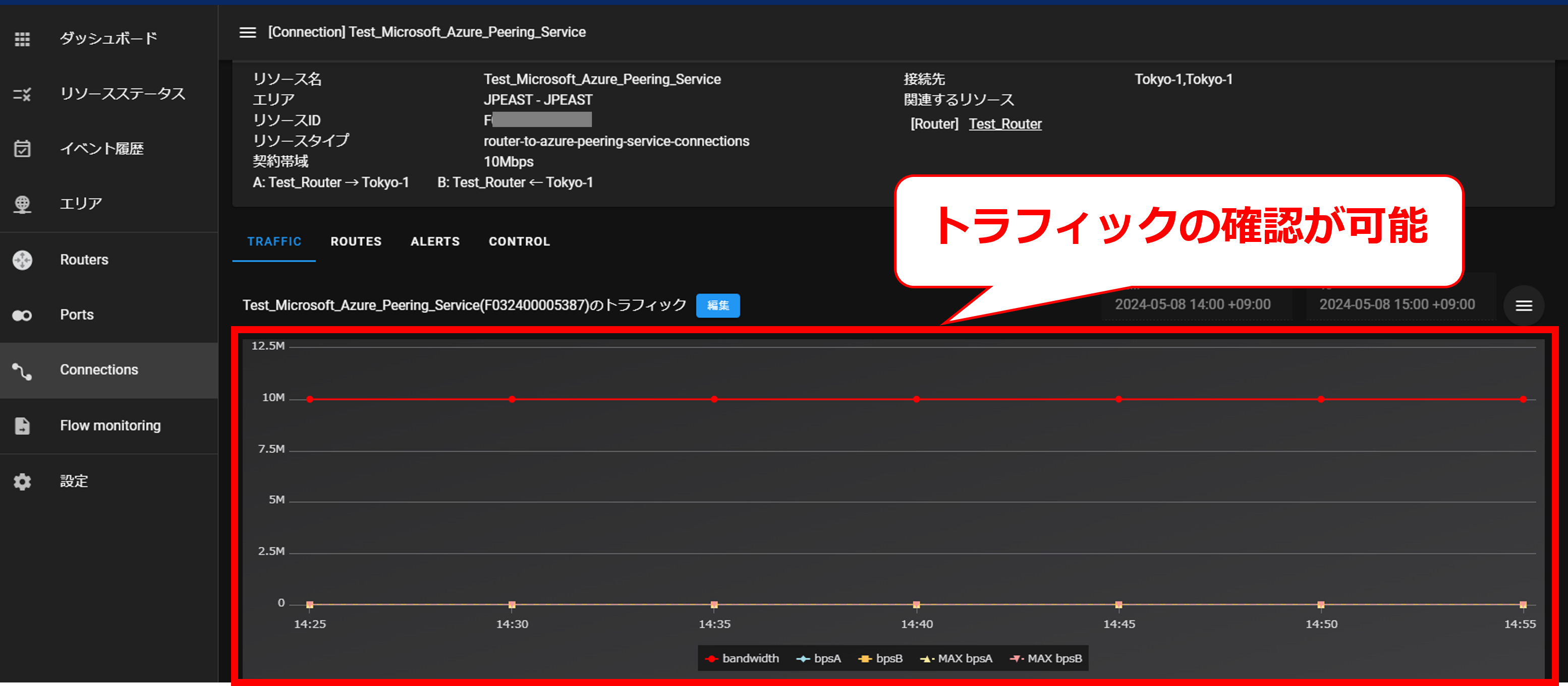 10.9.9 コネクション接続後の画面(Microsoft Azure Peering Service)