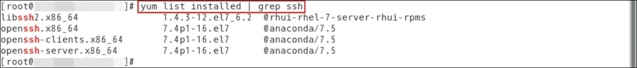 $ yum list installed | grep perl次に「SSH」を確認します。以下のようにインストールされています。