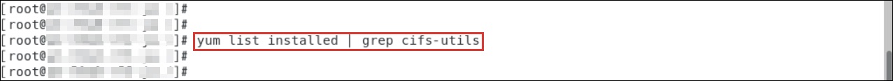 $ yum list installed | grep nfs-utils次に「cifs-utils」を確認します。以下のようにインストールされていません。