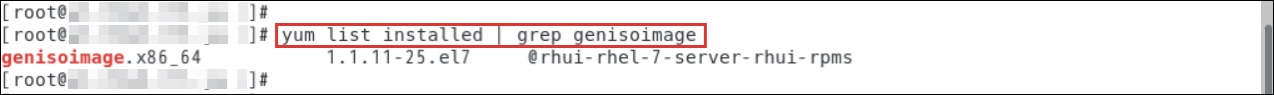 $ yum list installed | grep genisoimage次に「squashfs-tools」を確認します。以下のようにインストールされていません。