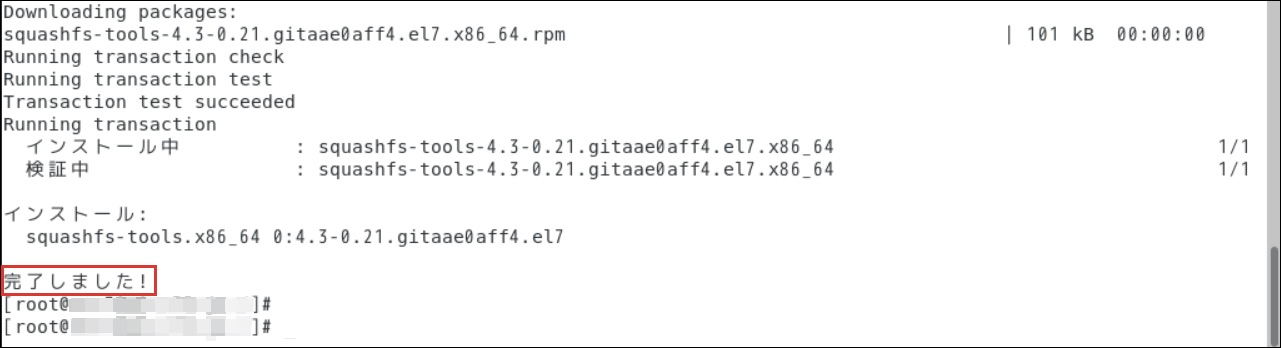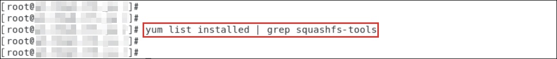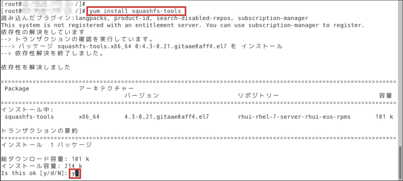 $ yum list installed | grep squashfs-tools「squashfs-tools」を以下のようにインストールします。インストール実行時の[y/d/N]選択では[y]を選択します。