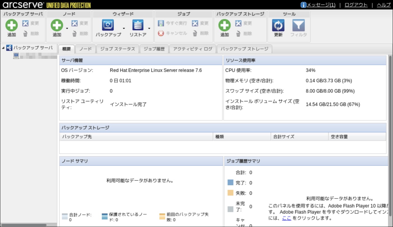 - インストール後、正常に管理画面が表示されるかを確認します。Arcserveがインストールされたバックアップ対象Linuxサーバーもしくは、このサーバーにネットワークでアクセスできるサーバーなどからブラウザーを開きます。