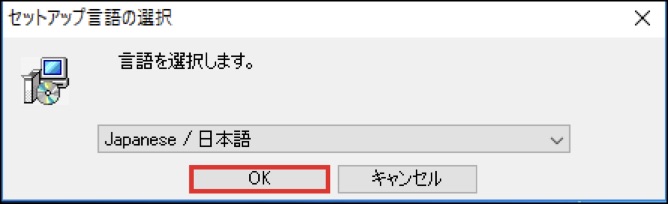 - セットアップ言語の選択の画面にて、ご利用になりたい言語を選択してください。(ここでは日本語を選択します。) [OK]をクリックします。
