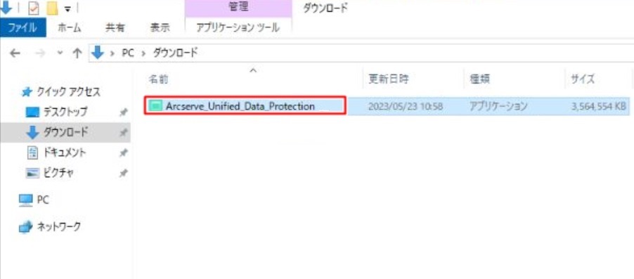 - Arcserveの Agent をインストールするコンピューターに、AdministratorまたはAdministratorsグループのユーザーでログオンします。Arcserve Webサイトから、ダウンロードしたインストーラが保存されているフォルダーを開き、「Arcserve_Unified_Data_Protection.exe」をダブルクリックします。セットアップウィザードが開始されます。