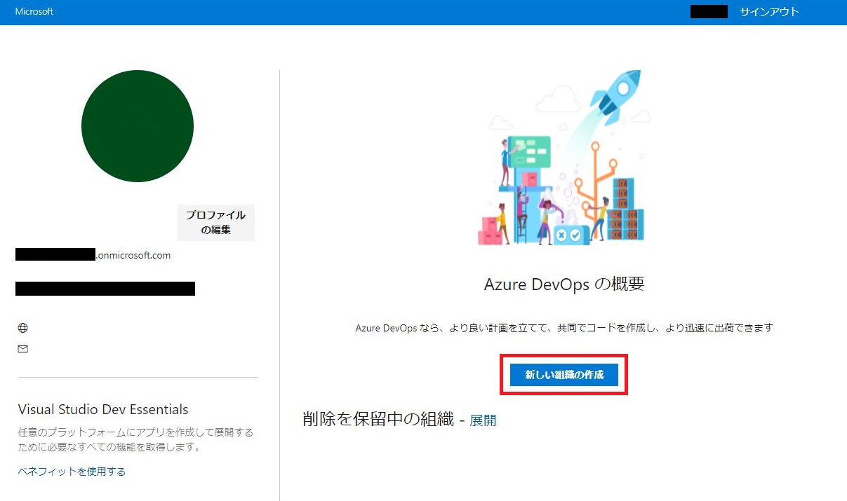 Azure DevOps環境を申し込む手順です。