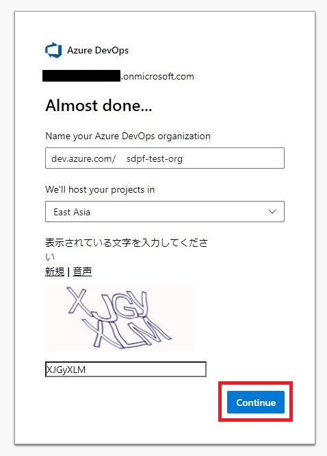 Azure DevOpsが作成されるまで待機します。