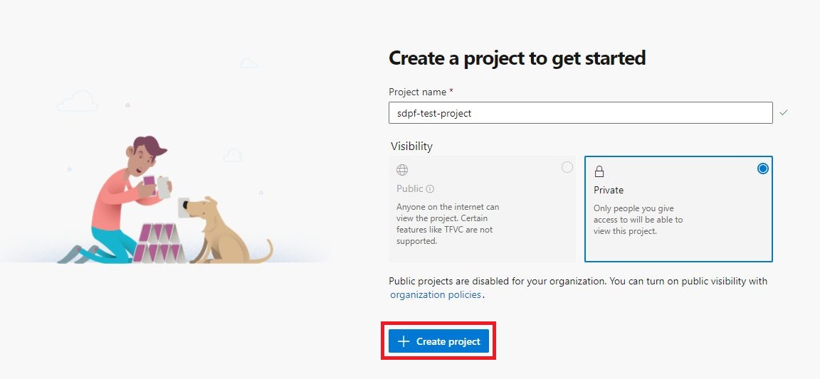 あらかじめ準備したAzure環境に紐づいたAzure DevOps組織・プロジェクトを作成します。