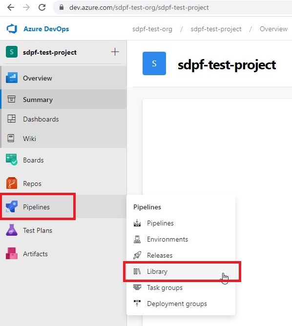 画面左のメニューより、[Pipelines]>[Library]をクリックします。