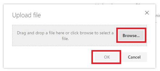 表示された「Upload file」画面で、アップロードするファイルを選択し、[OK]をクリックします。