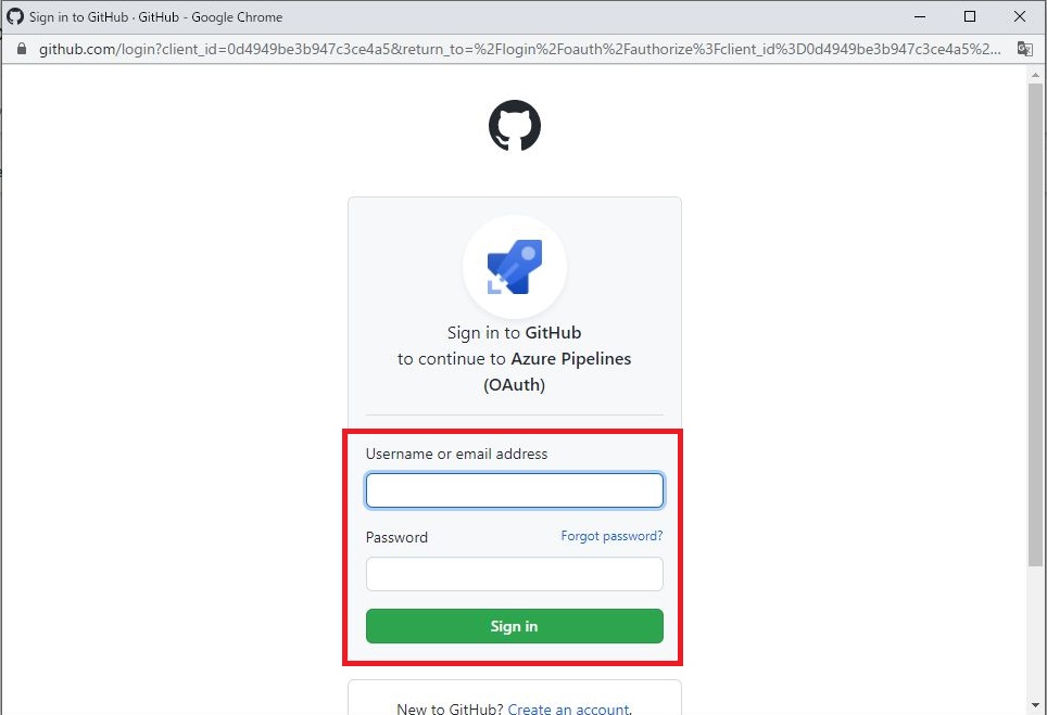 GitHubへのサインイン画面が表示されるので、ユーザー情報を入力しGitHubにサインインします。