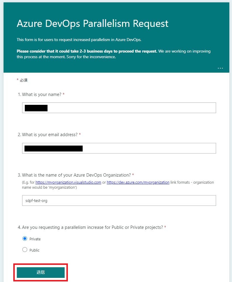 「Azure DevOps Parallelism Request」にアクセスします。