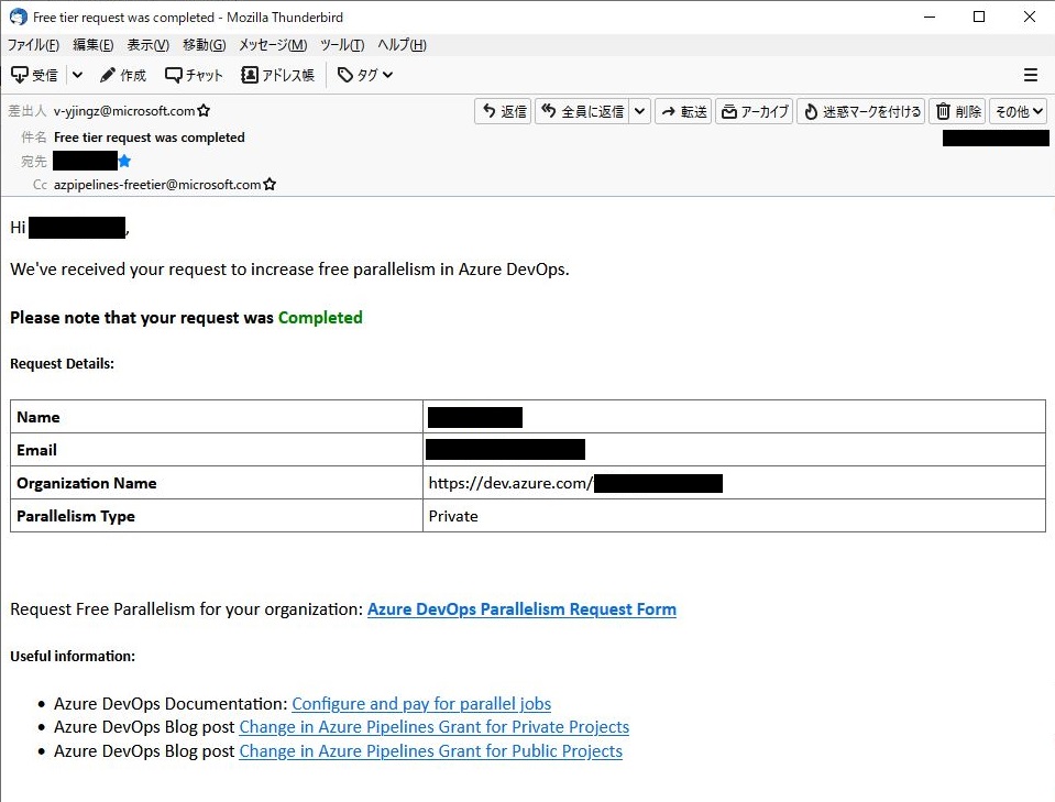 2~3営業日で、「担当者のメールアドレス」宛に審査結果が届きます。承認されると、自動構築コードの実行が可能となります。