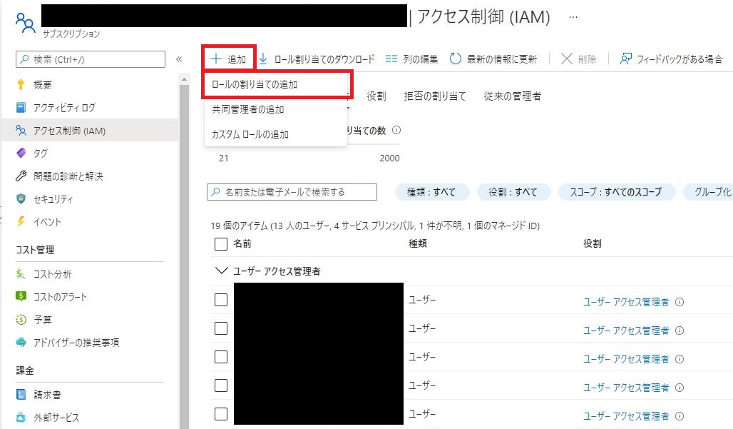 [+ 追加]>[ロールの割り当ての追加]をクリックします。