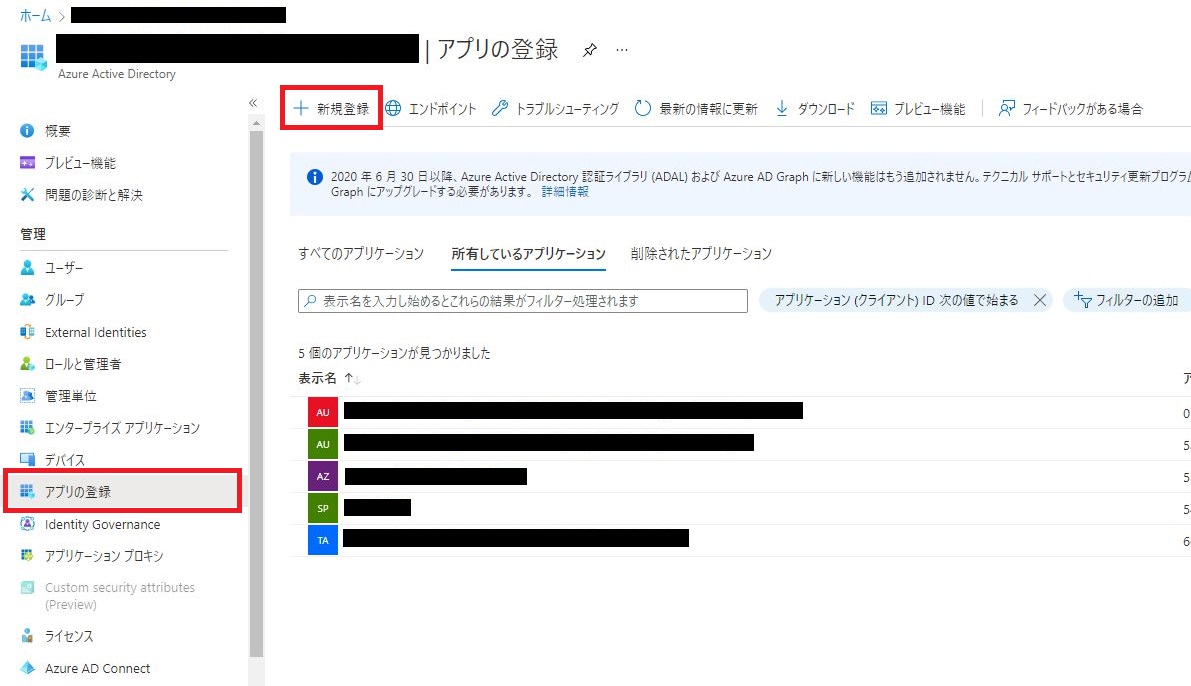 画面左のメニューより、[アプリの登録]をクリックします。