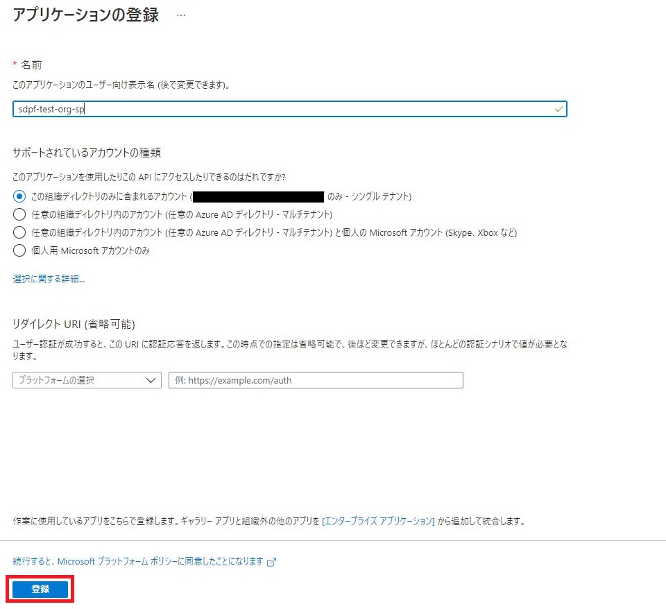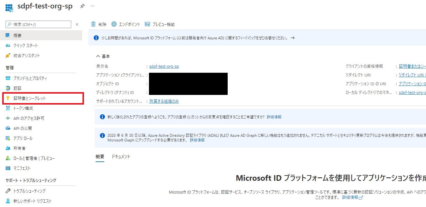Tenant ID: <作成したサービスプリンシパルのディレクトリ(テナント)ID>