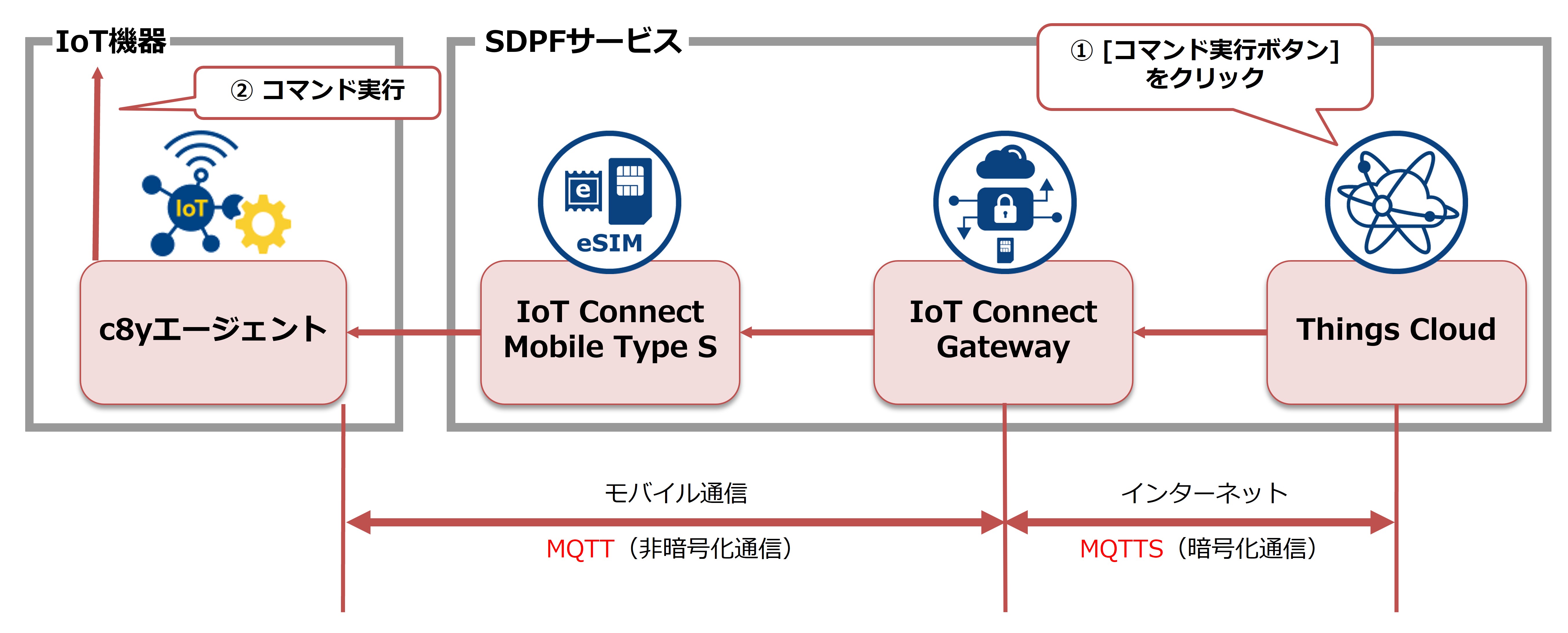 ICGWからThings CloudまではMQTTS(暗号化通信)となります。