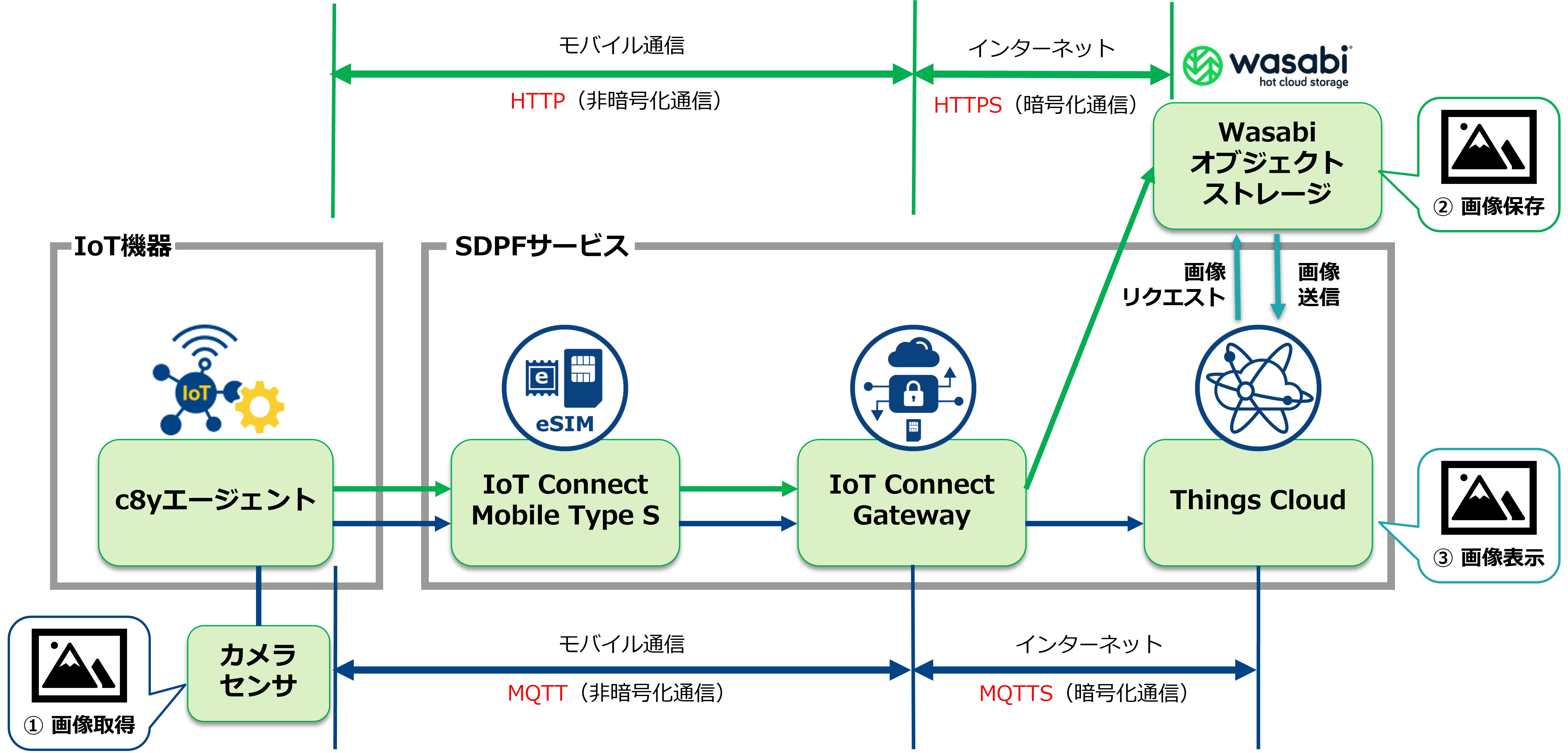 ICGWからWasabiまではHTTPS(暗号化通信)となります。