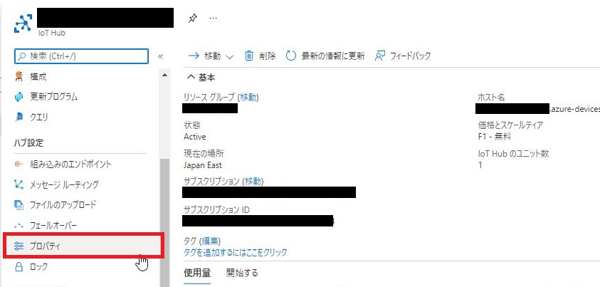 IoT機器にて設定をするにあたり、転送先クラウドサービスのAzure IoT Hubの接続・設定情報を確認する必要があります。