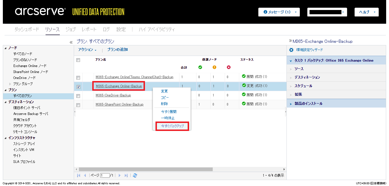 1.1.6.1. Exchange Onlineを使用したバックアップを実施する¶