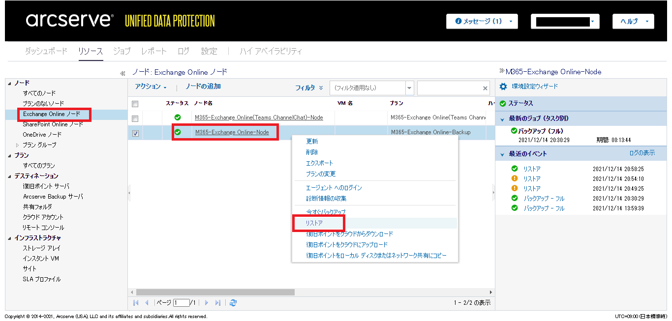 1.1.7.1. Exchange Onlineのリストアを実施する