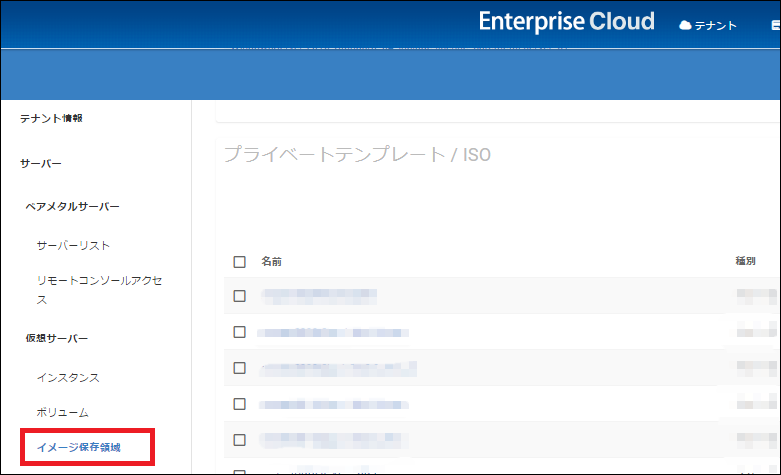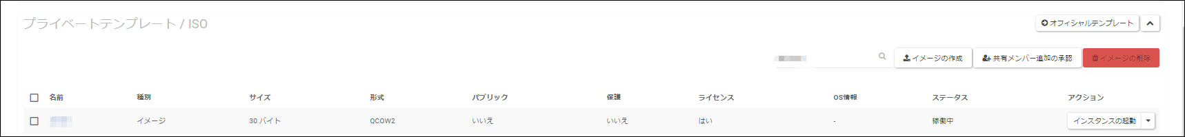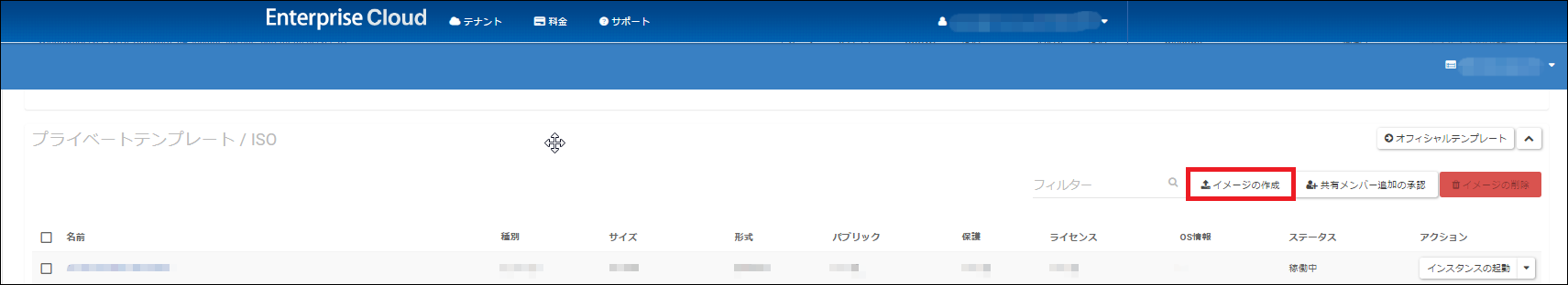 2.「プライベートテンプレート/ISO」から「イメージの作成」をクリックします。