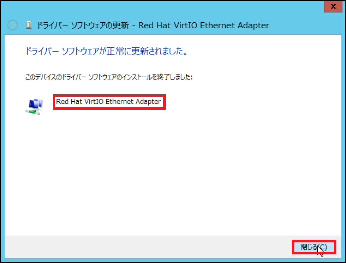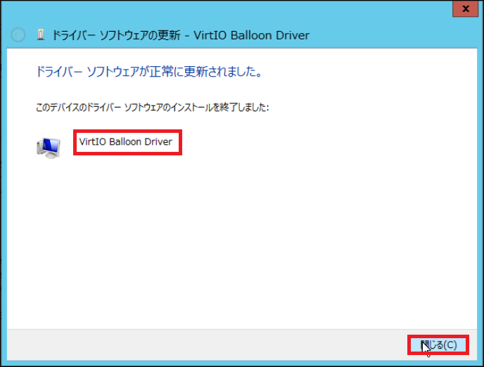 インストール完了後、「VirtIO Balloon Driver」が表示されていることを確認し、「閉じる」をクリックします。