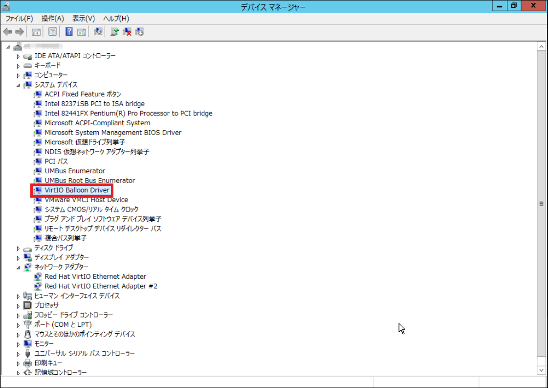 システムデバイスに「VirtIO BalloonDriver」がインストールされたことを確認します。