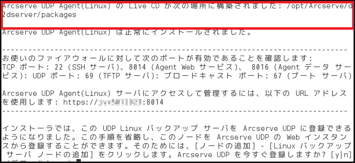1.Arcsereve(Linux版)では、復旧メディアはインストール時に作成されます。インストール時に出力される以下の文章にその保存先が表示されておりますので、そのディレクトリ配下からメディアを取得します。
