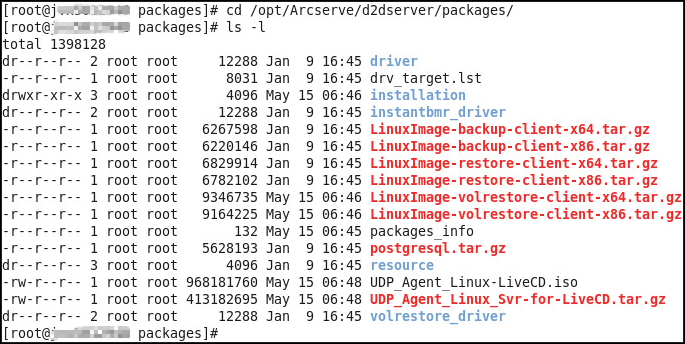 2./opt/Arcserve/d2dserver/packages 配下にUDP_Agent_Linux-LiveCD.isoがあることを確認します。