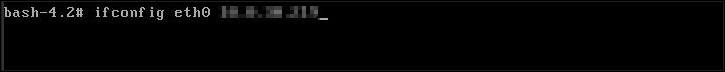 7.リストア用サーバ(復旧メディアで起動しているサーバ)に設定するIPアドレスを、ifconfigコマンドで設定します。