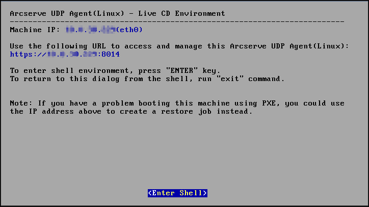 10.元の画面に戻ります。以下のようにIPアドレスが設定されていることと、リストア実施を設定する画面にアクセスするためのURLが表示されていることを確認します。
